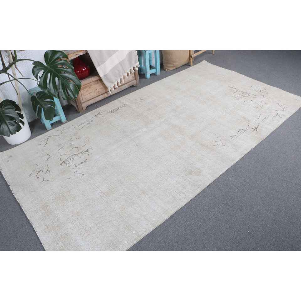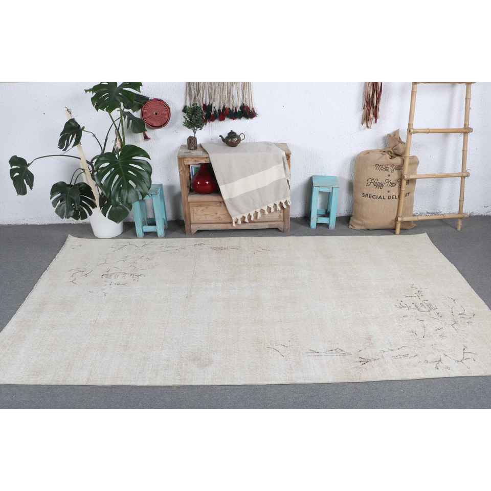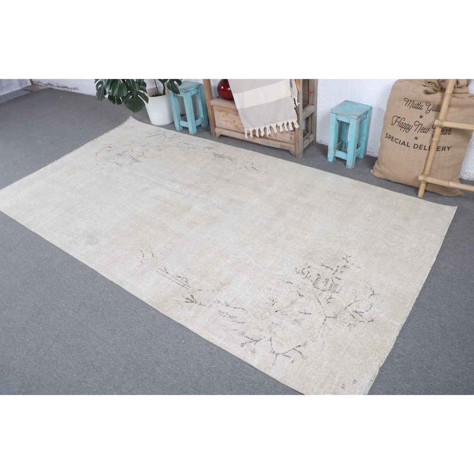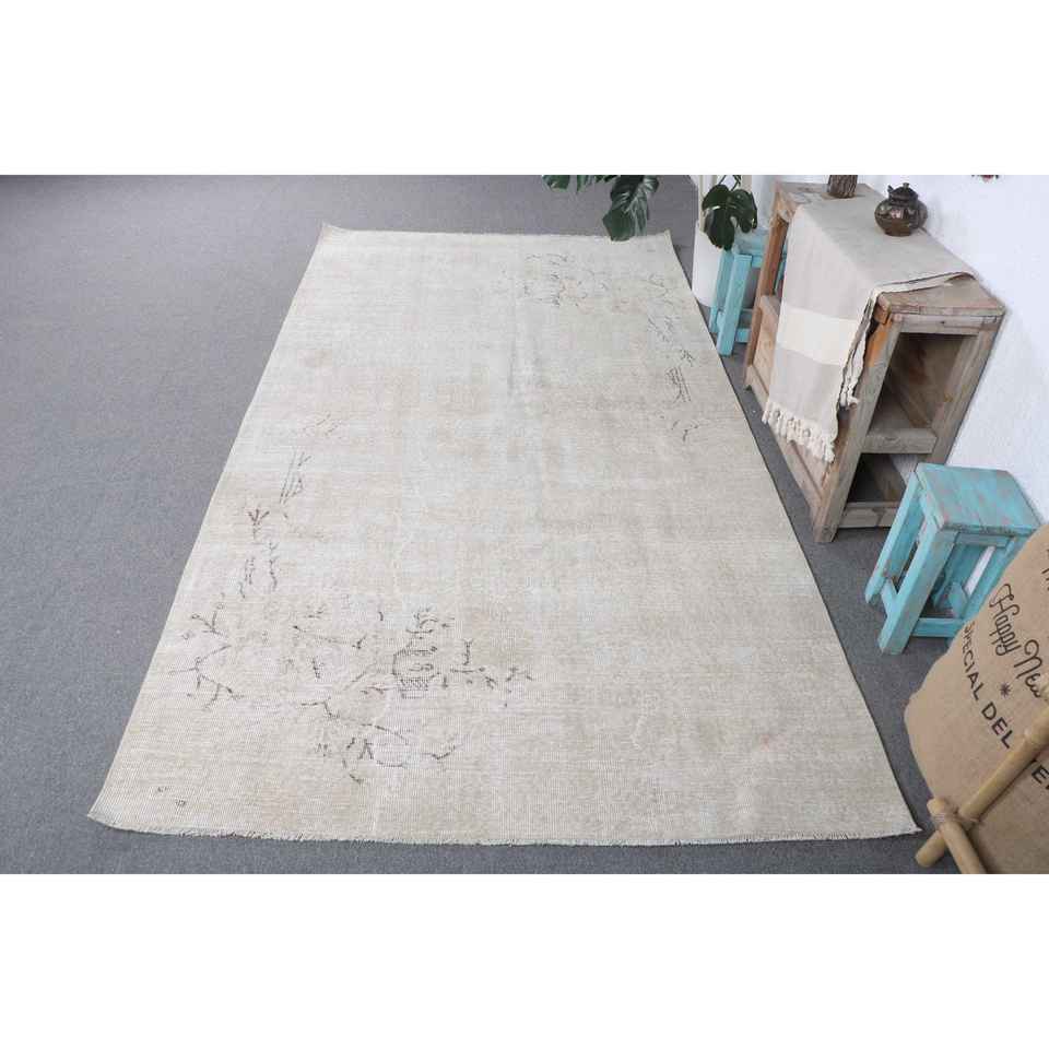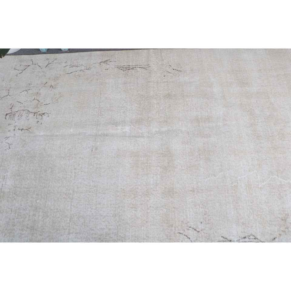 พรมวินเทจขนาดใหญ่ 4.7x8.9 ฟุต พรมตุรกี สีเบจน้ำตาล พรมขนสัตว์แท้