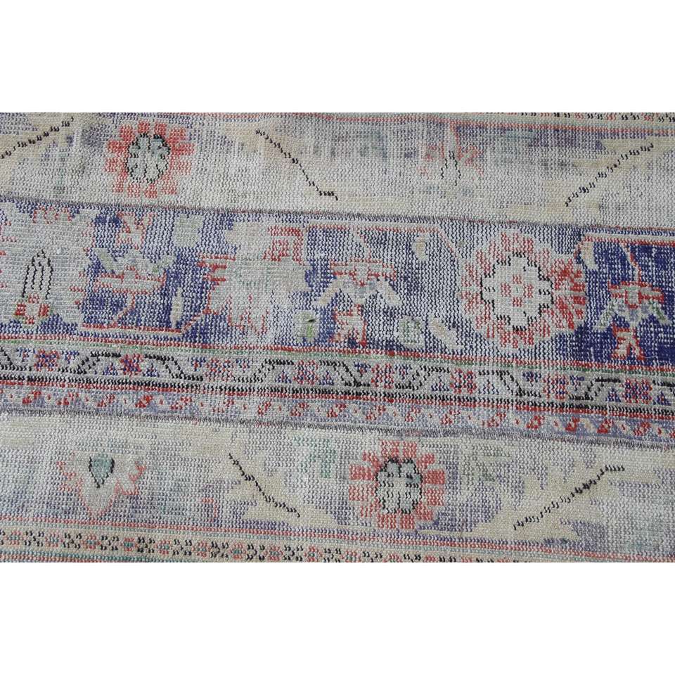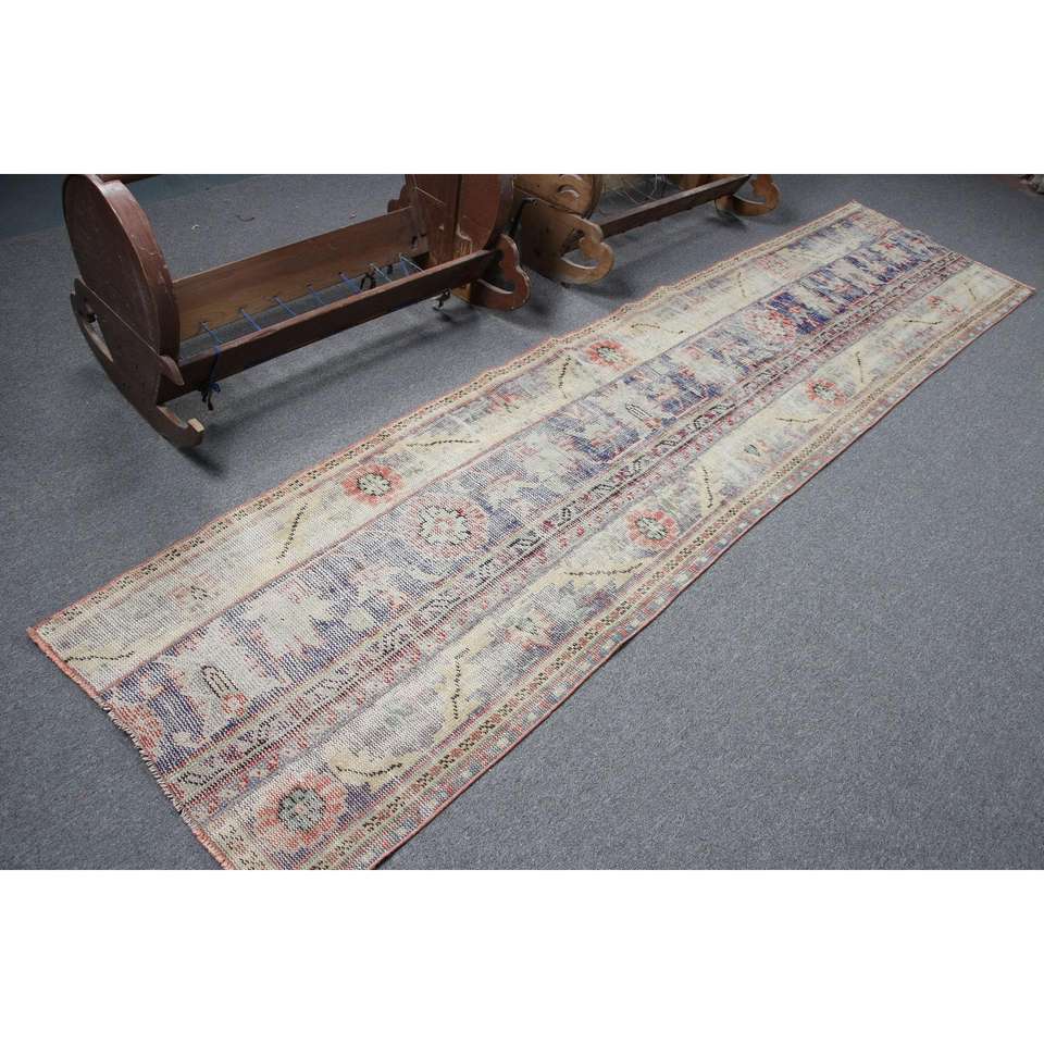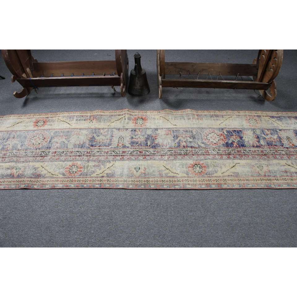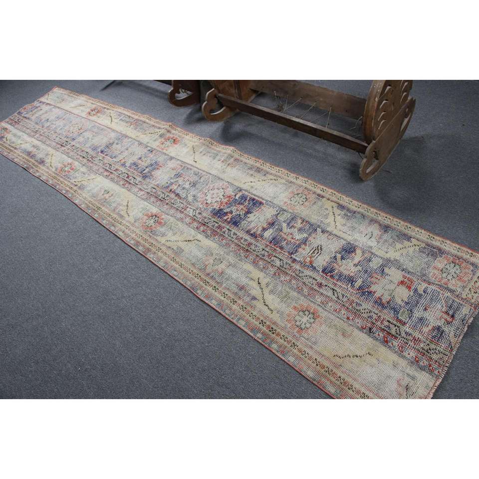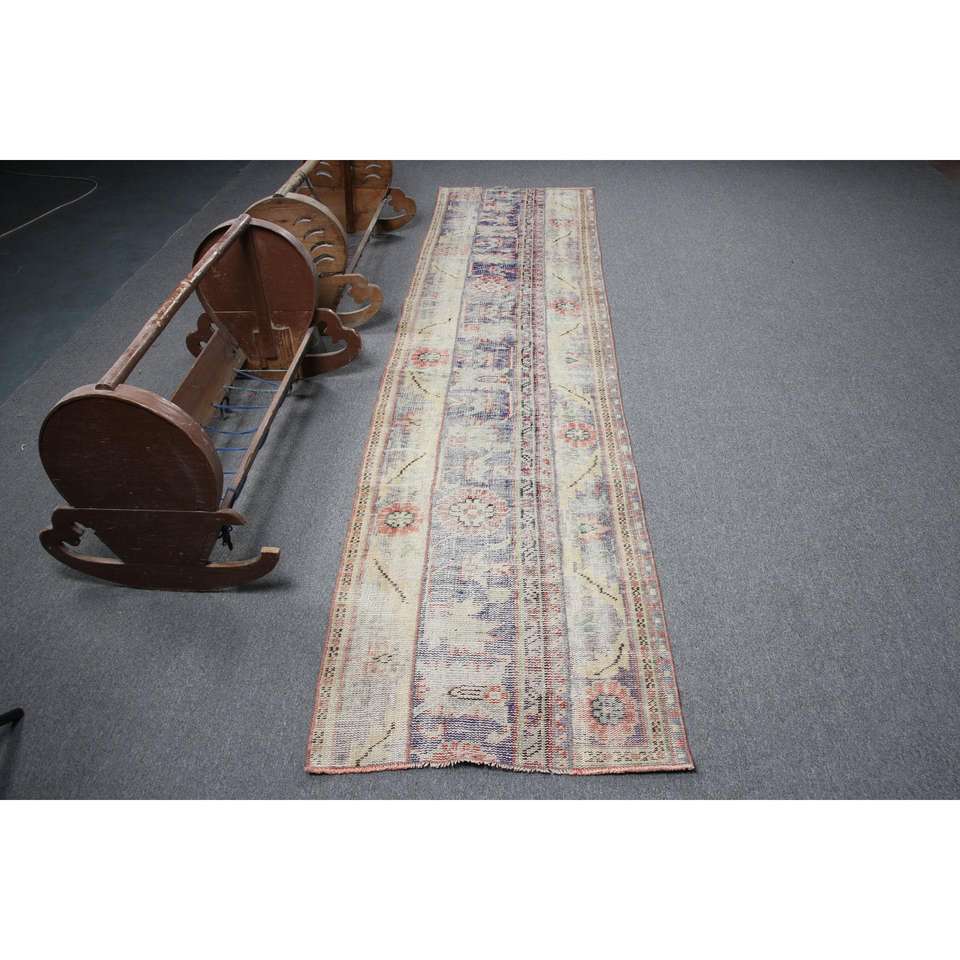 พรมวินเทจ, พรมแบบยาวขนาด 2.5x10.7 ฟุต พรมตุรกี, พรมขนสัตว์สีน้ำเงินสไตล์ตะวันตกเฉียงใต้