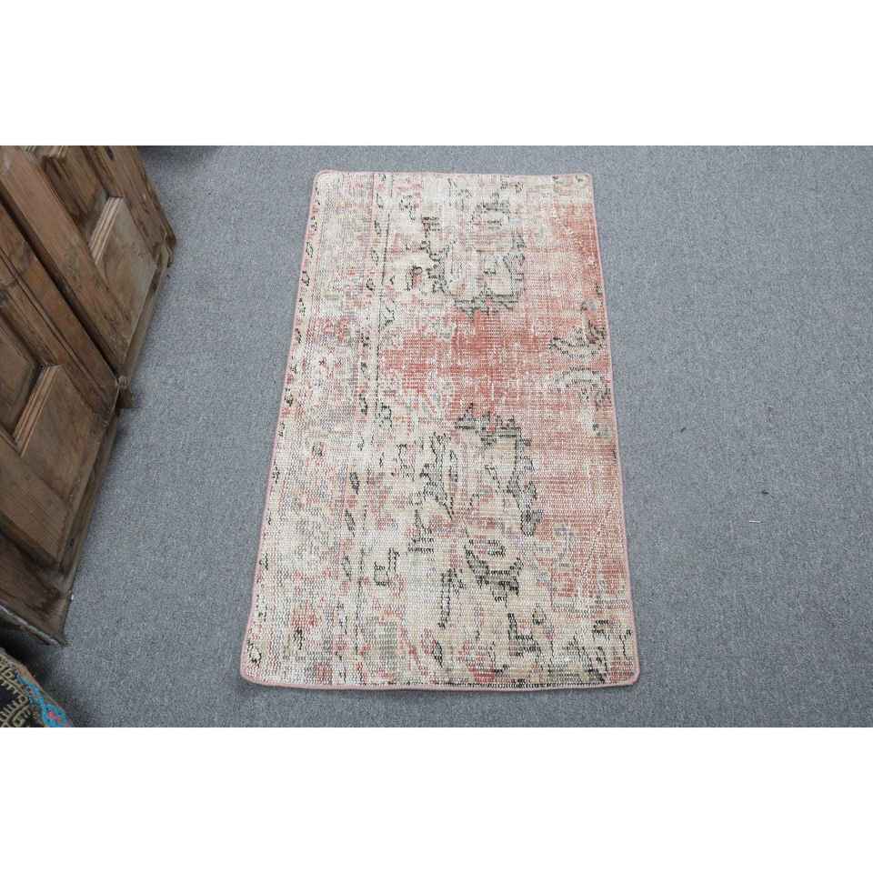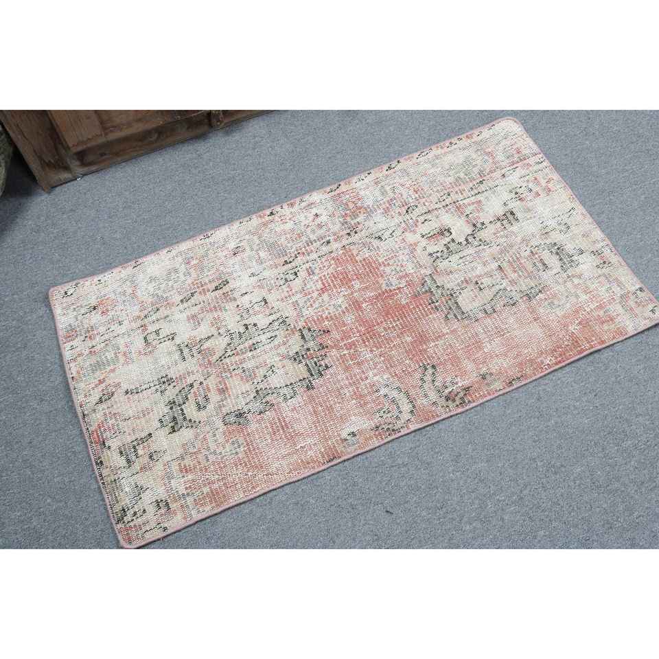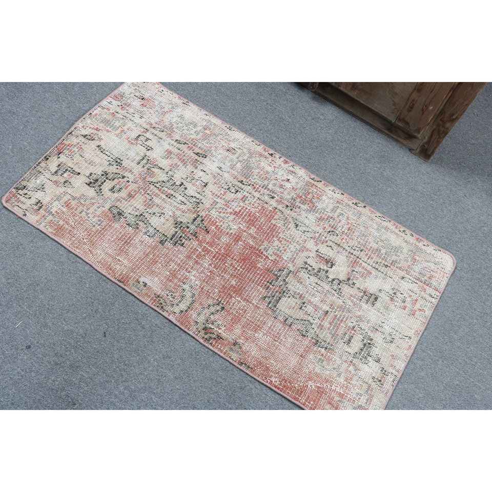 Vintage Rug, Small 1.9x3.6 ft Rug, Red Polka dot Rug
