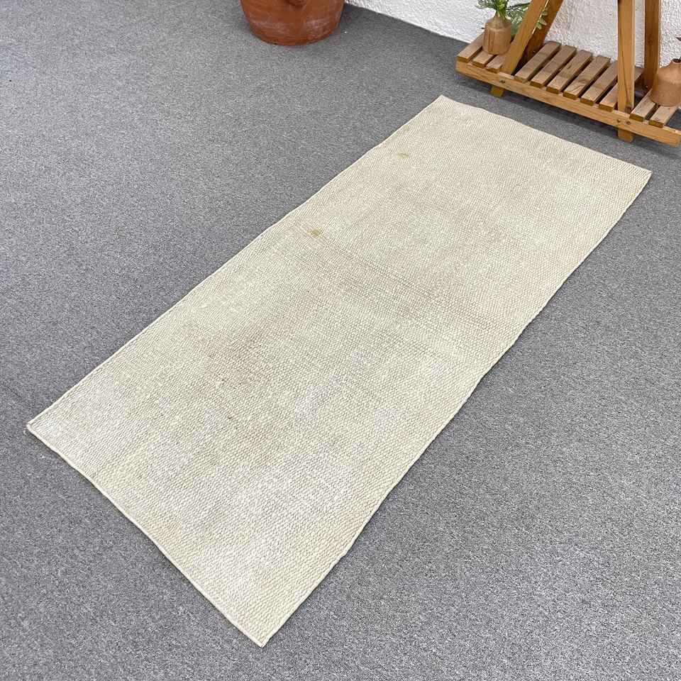 พรมวินเทจ ขนาดเล็ก 2.4x5.5 ฟุต พรมตุรกี สีขาวเทา พรมขนสัตว์สีพื้น