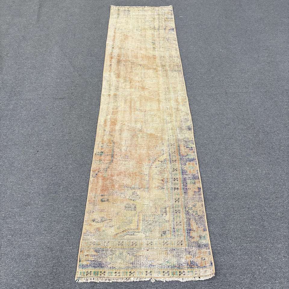 พรมวินเทจลายรันเนอร์ ขนาด 2.1x8.7 ฟุต (63x266 ซม.) พรมตุรกีสีน้ำตาลลายตะวันออก ดีไซน์แบบ Patchwork ทำจากวัสดุขนสัตว์ ด้านหลังทำจากยางลาเท็กซ์ เป็นมิตรกับสิ่งแวดล้อม