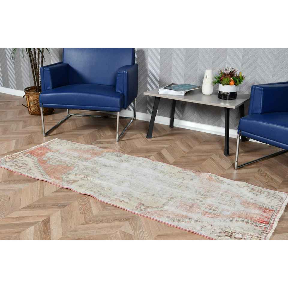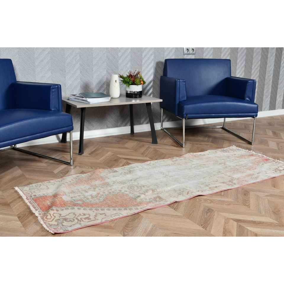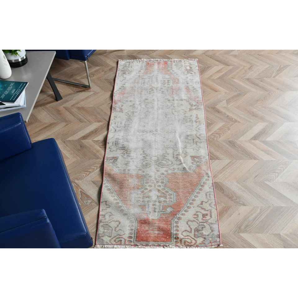 พรมวินเทจลายดอกไม้สีขาวสไตล์ตุรกี ขนาด 2.3x6.3 ฟุต (71x191 ซม.)