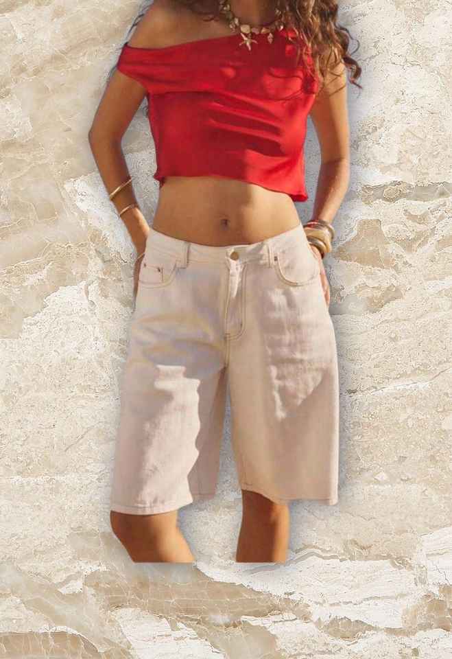 กางเกงยีนส์ขาสั้นทรงวินเทจ