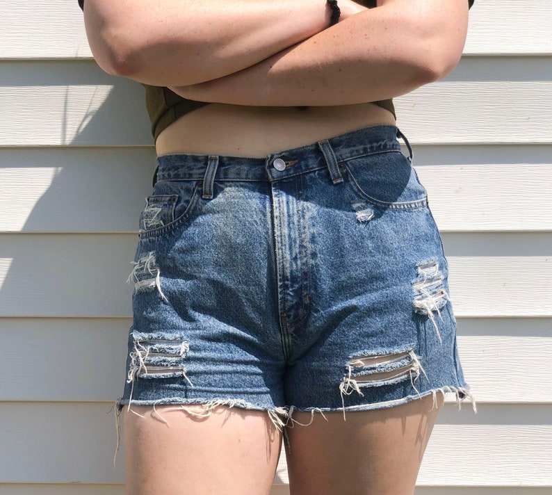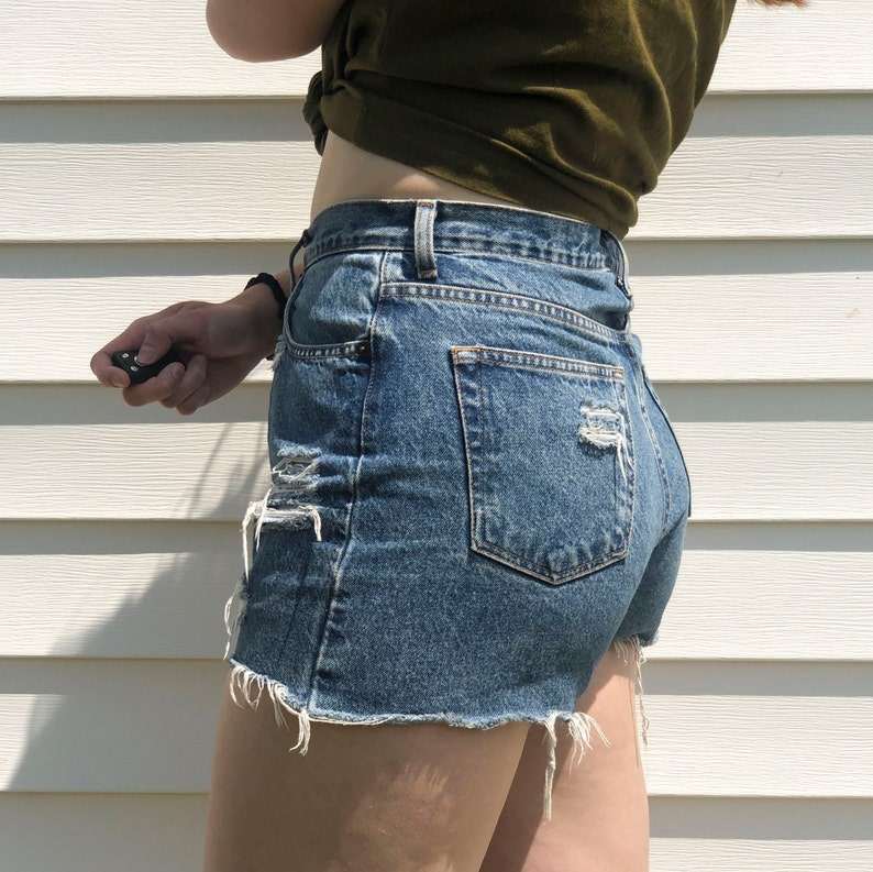 กางเกงยีนส์ขาสั้นทรงวินเทจ