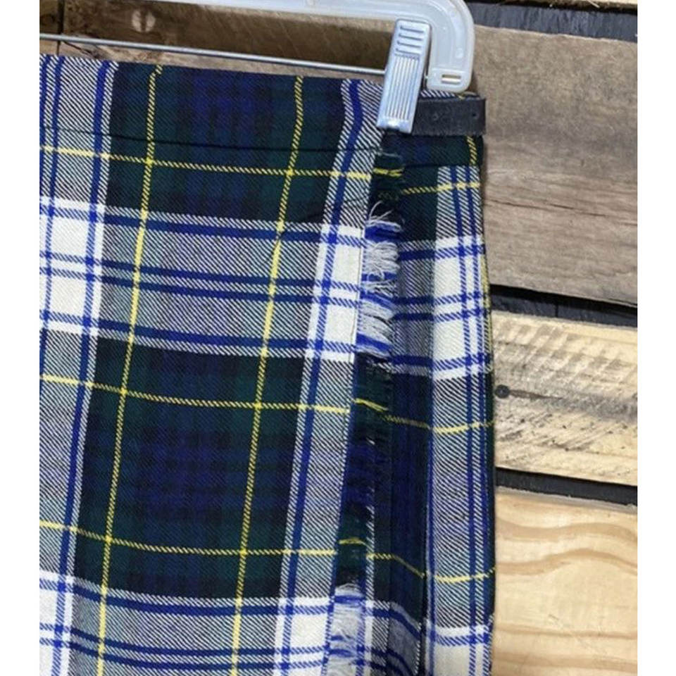 Vintage Scottish Dress Gordon Tartan Kilt Retro 90's 100% Wool Leather Buckles Irish Women's Skirt