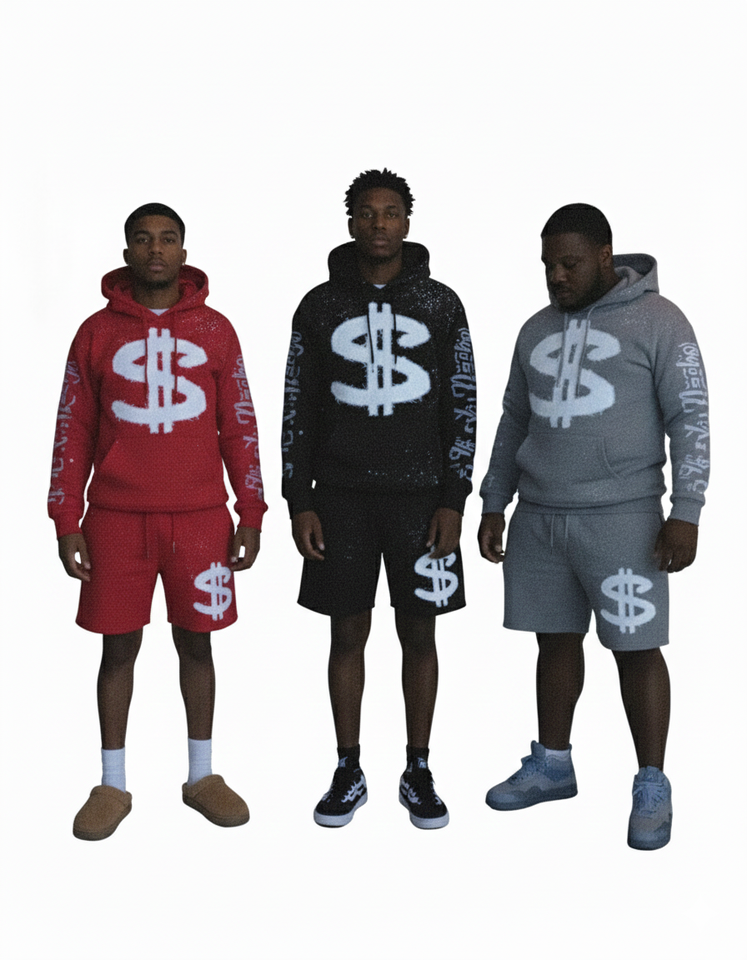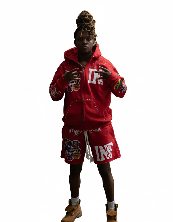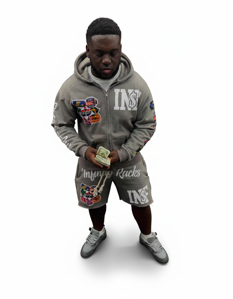 ชุดวอร์มสกรีนลายวินเทจทรงโอเวอร์ไซส์ ชุดสเวตเชิ้ตสั่งทำพิเศษ ล้างสีทั้งตัว ประดับคริสตัล ชุดฮู้ดดี้ครอปซิปและกางเกงขาสั้นสำหรับผู้ชาย
