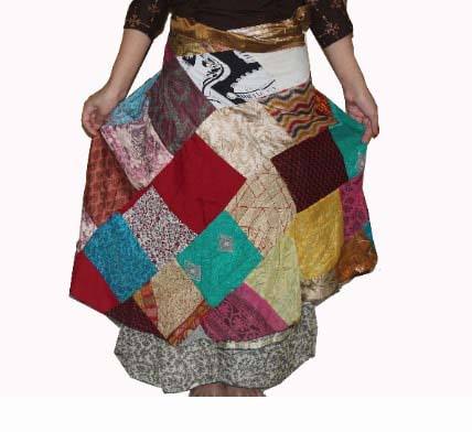 กระโปรงผ้าไหมแบบเย็บปะลายผ้าลายสองชั้นและกลับด้านได้ชุดเดรสกระโปรงวิเศษรอบชุดชายหาดชุดกระโปรงพันรอบ