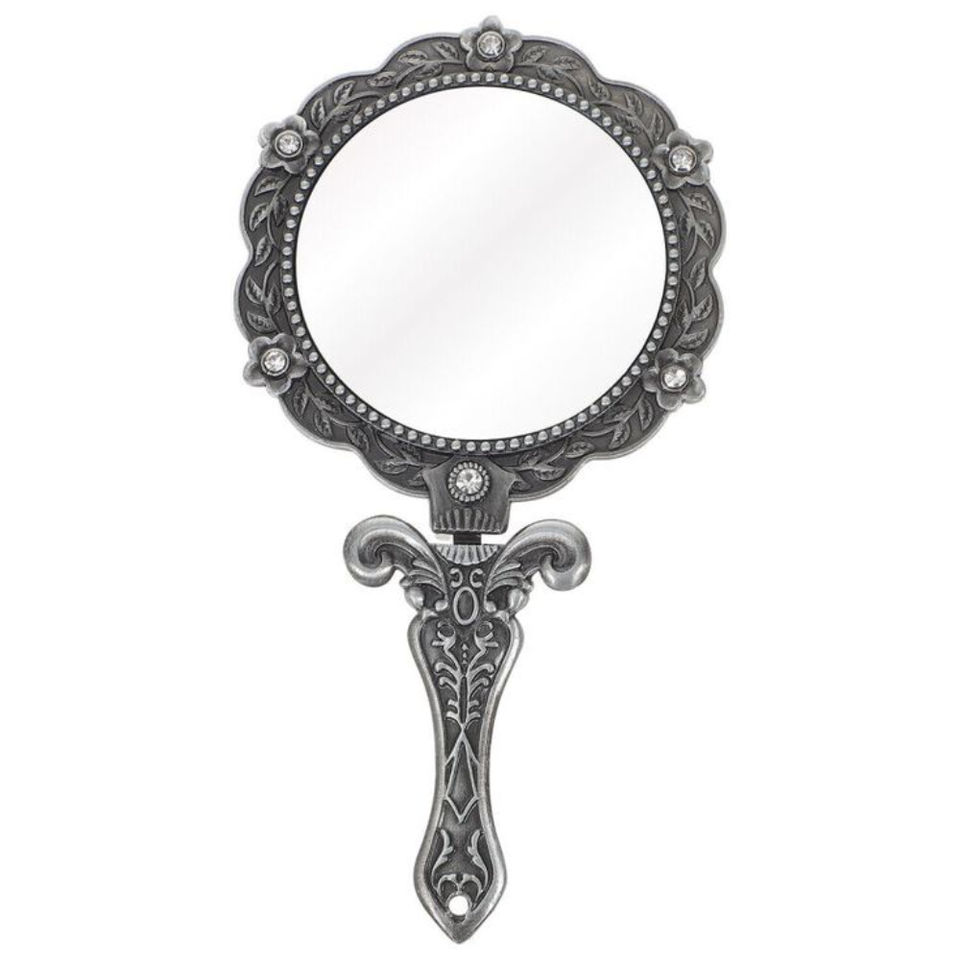 กระจกแต่งหน้าโลหะชุบสีเงินวินเทจสำหรับใช้ในชีวิตประจำวันเพื่อความงามและการเดินทาง