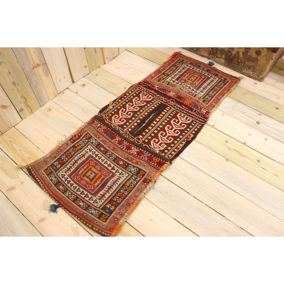 พรมวินเทจขนาดเล็ก 1.7x4.4 ฟุต พรมขนสัตว์สีแดงแบบไล่เฉดสไตล์ตุรกี