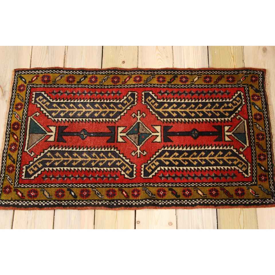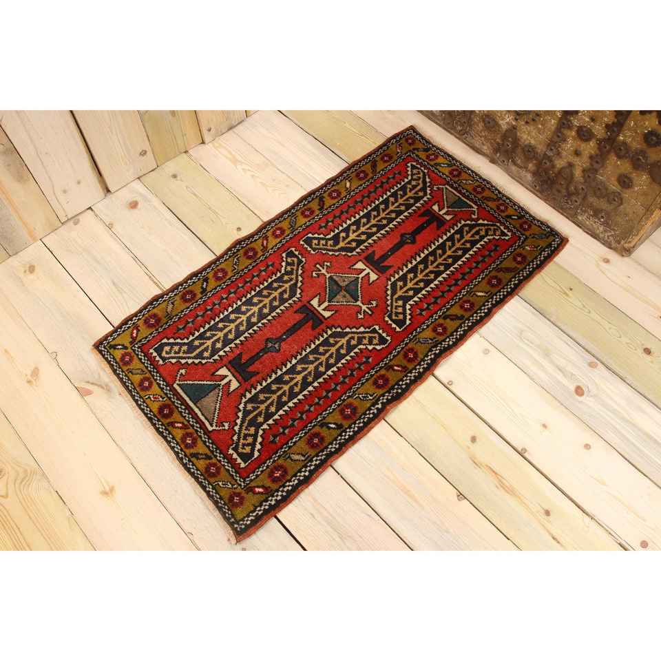พรมวินเทจขนาดเล็ก, พรมตุรกีขนาด 1.8x3.2 ฟุต, พรมขนสัตว์สีแดง