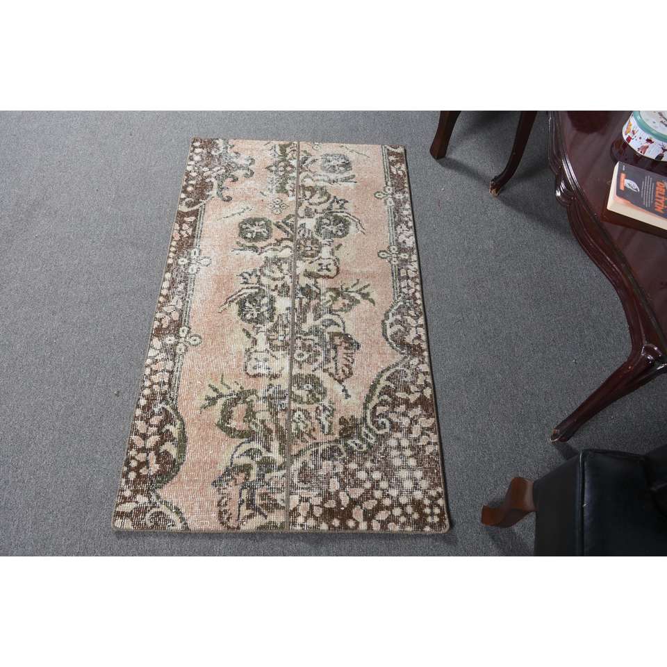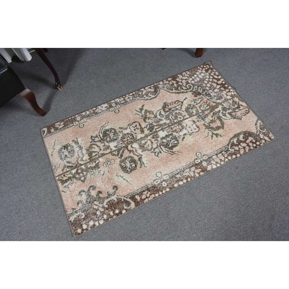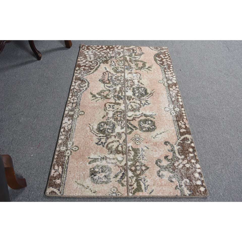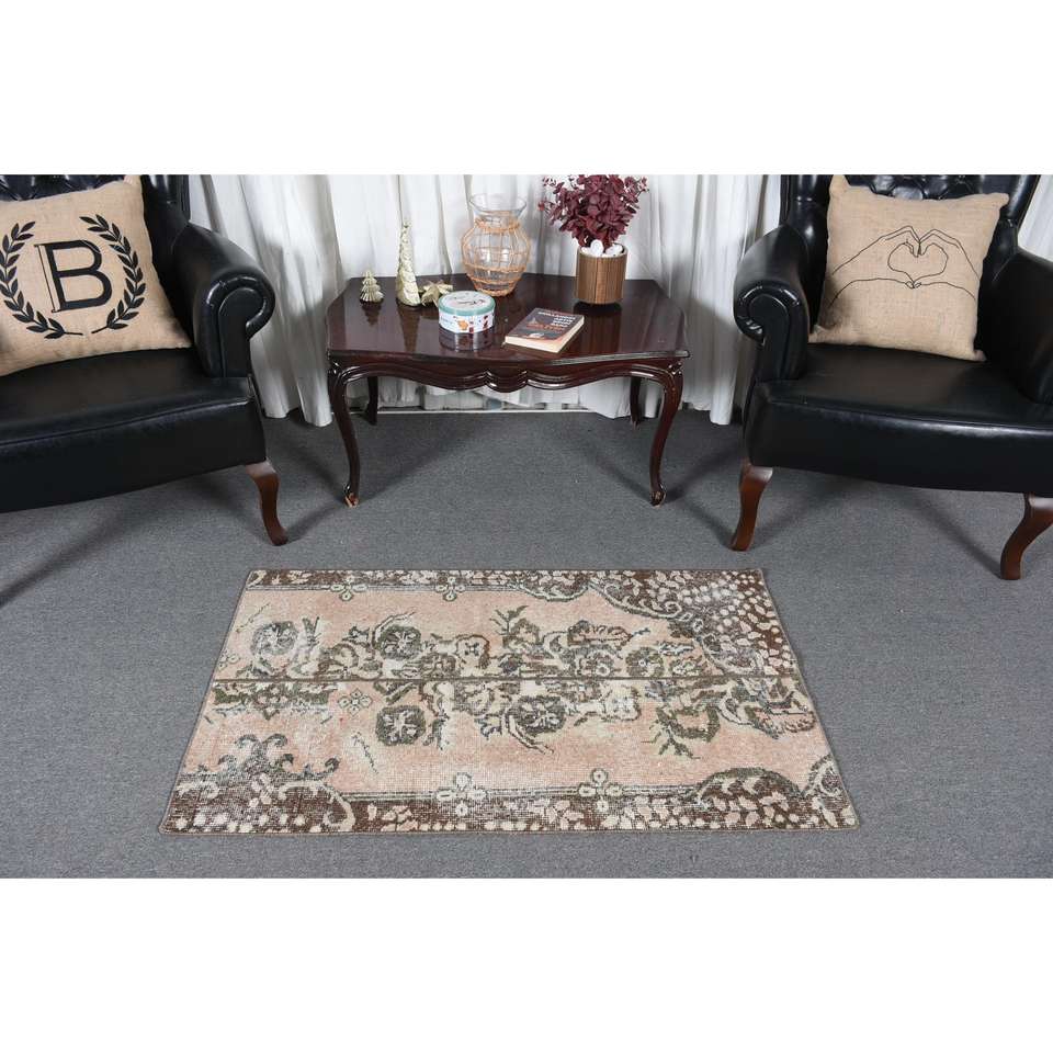 พรมวินเทจขนาดเล็ก 2.3x4.1 ฟุต (71x124 ซม.) พรมสีน้ำตาลสไตล์ตุรกีตะวันตกเฉียงใต้