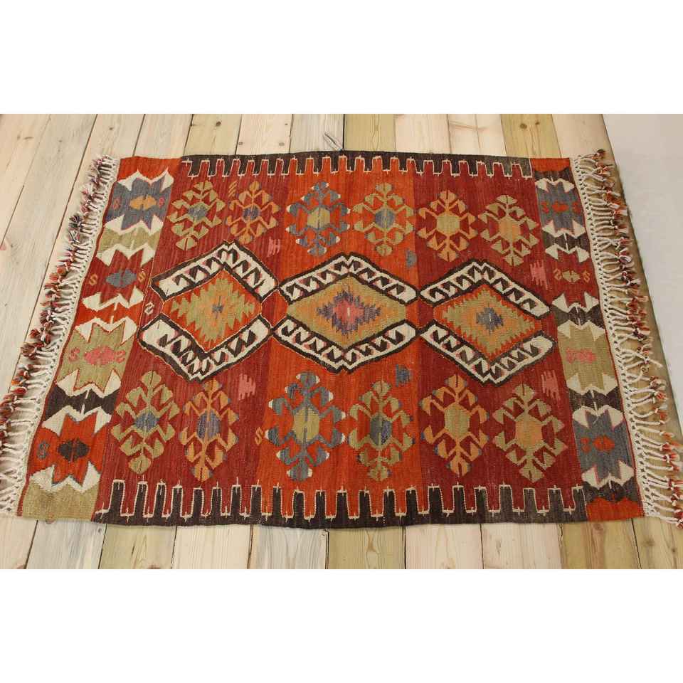 พรมวินเทจขนาดเล็ก 3.1x4.1 ฟุต (95x125 ซม.) พรมลายดอกไม้สีแดงแบบตุรกี