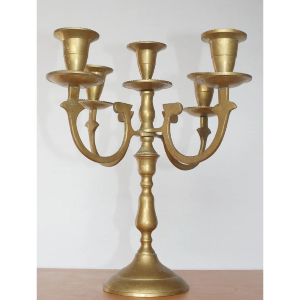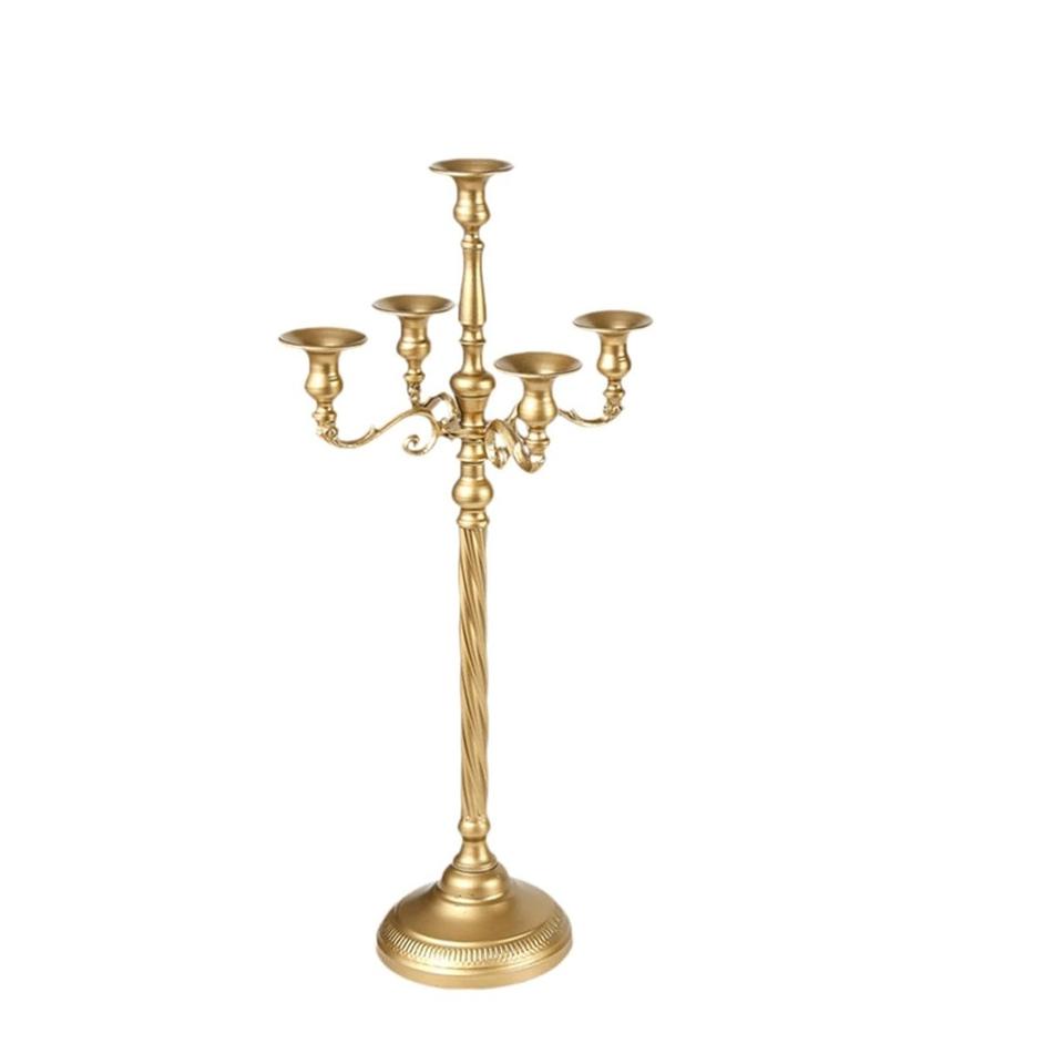 เชิงเทียนทองเหลืองโบราณ5แขนสำหรับตกแต่งบ้านและงานแต่งงาน