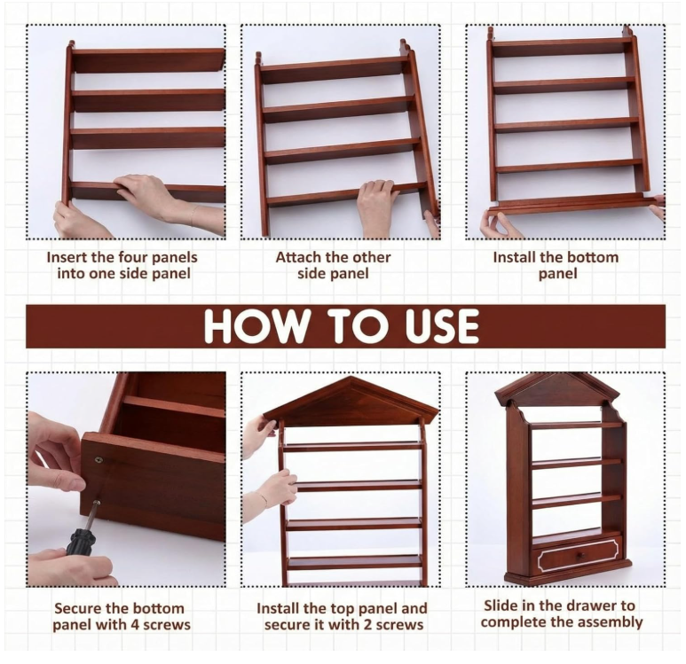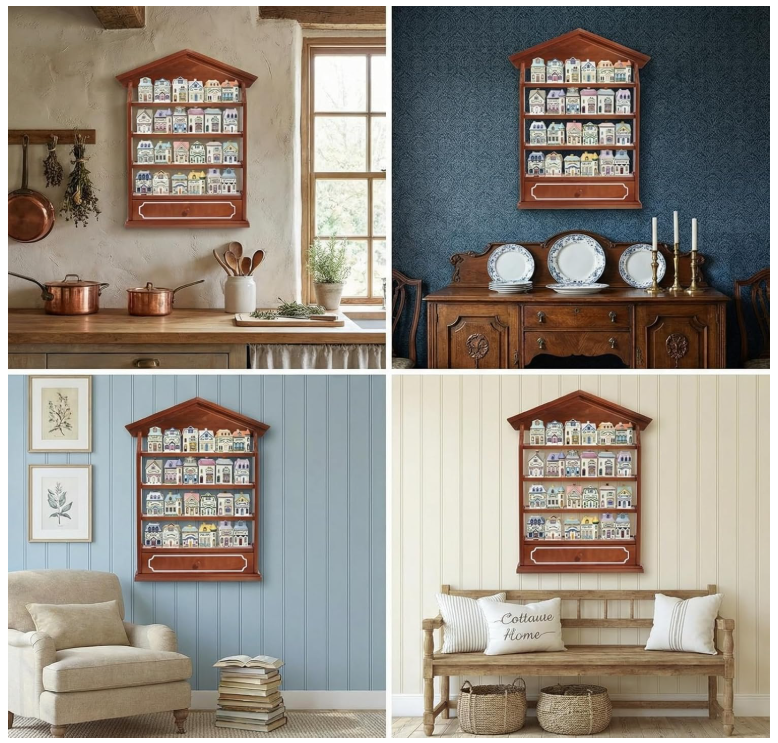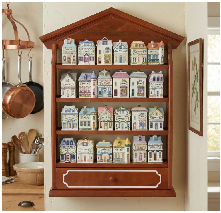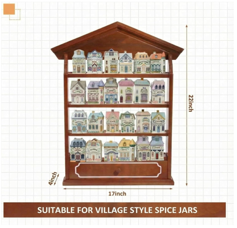 ชั้นวางของติดผนังแบบไม้รักษ์โลกสไตล์วินเทจสำหรับเก็บเครื่องเทศในครัว จุขวดได้ 24 ขวด