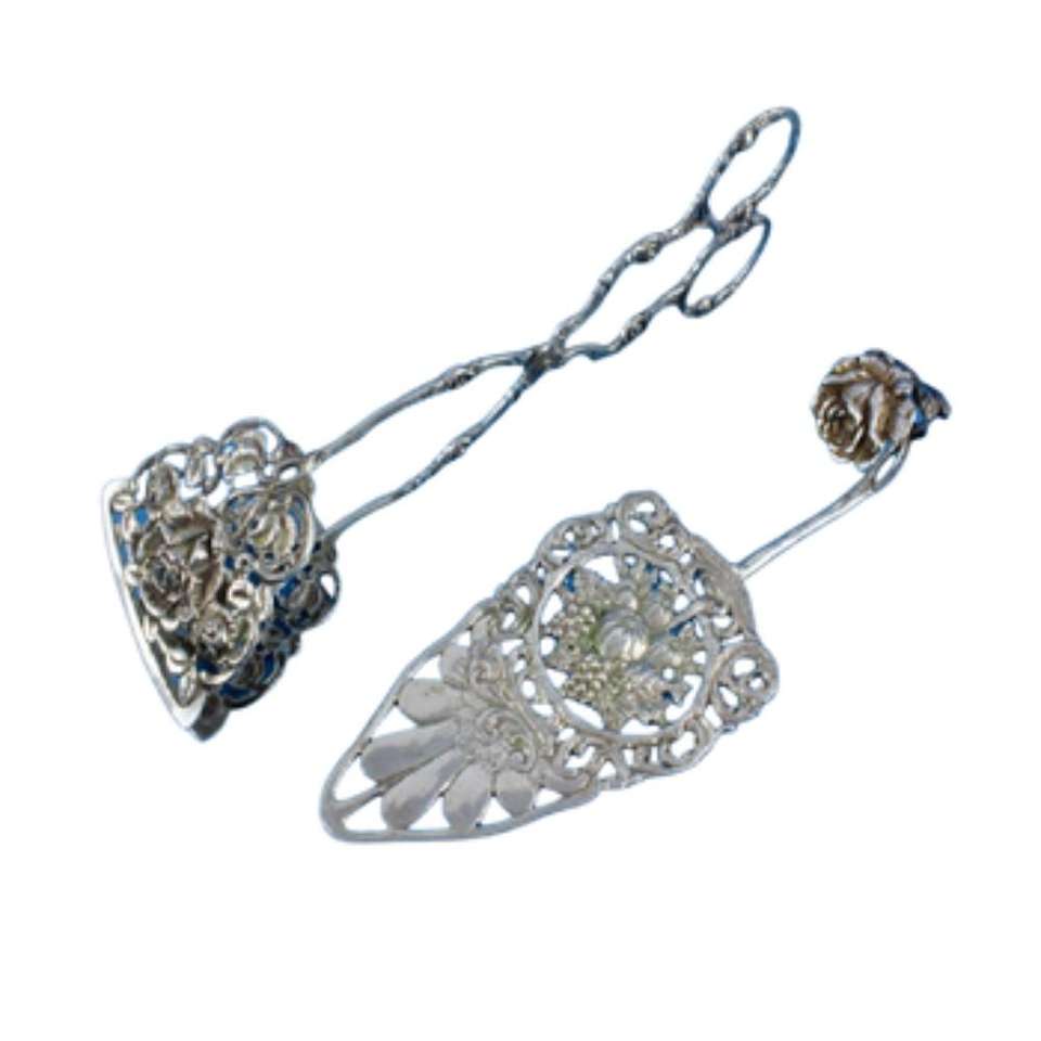 ชุดอุปกรณ์เสิร์ฟเค้กสีเงิน 2 ชิ้น พร้อมด้ามจับดีไซน์สวยงาม เหมาะสำหรับงานแต่งงาน งานเลี้ยง และใช้ในบ้าน จากอินเดีย