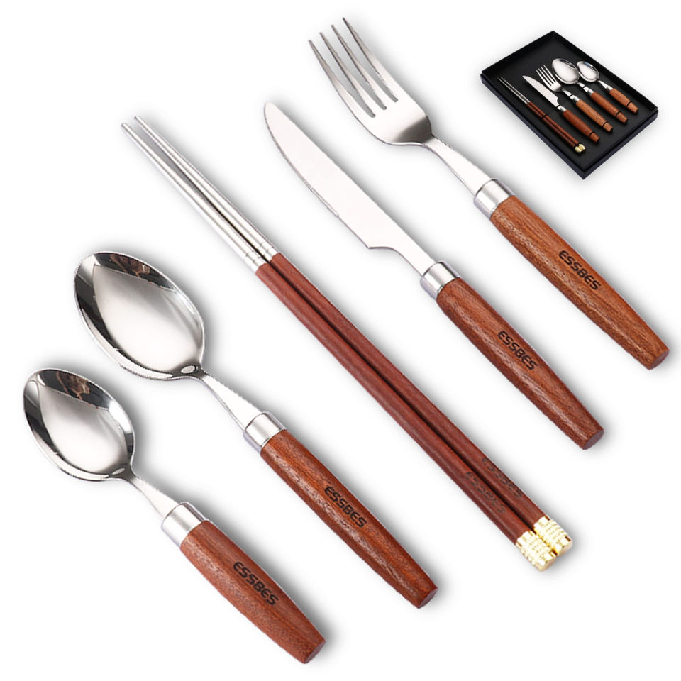 ชุดช้อนส้อมสแตนเลสสตีลวินเทจ พร้อมด้ามจับเรซิ่น ชุดอุปกรณ์รับประทานอาหารสำหรับบ้านและอุปกรณ์ครัว