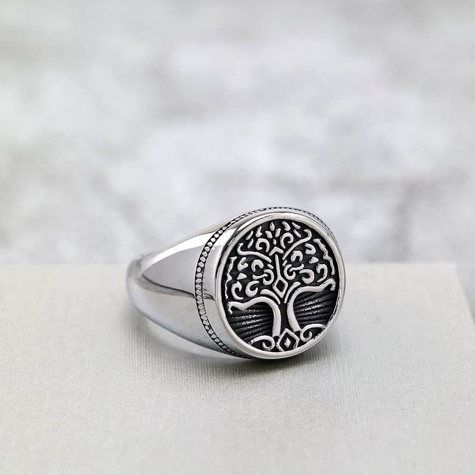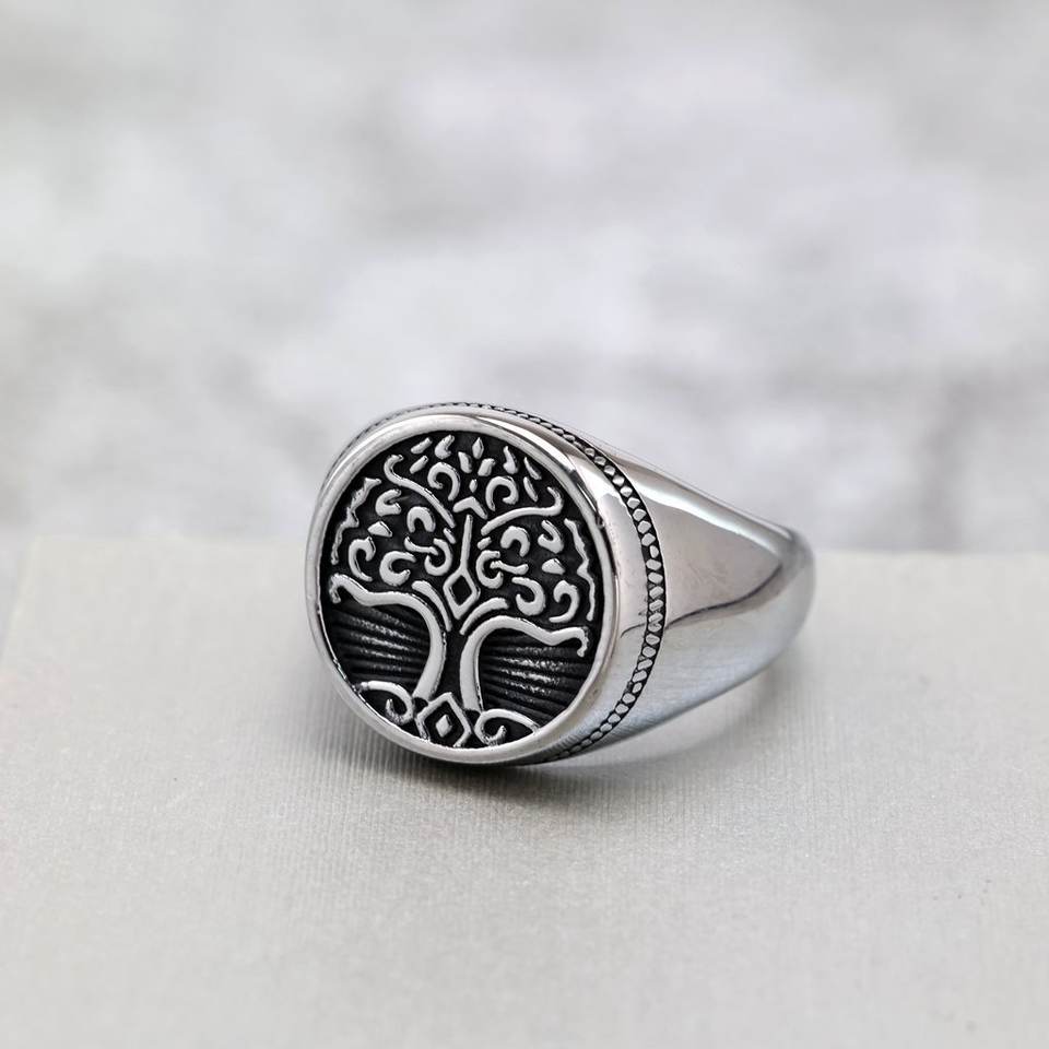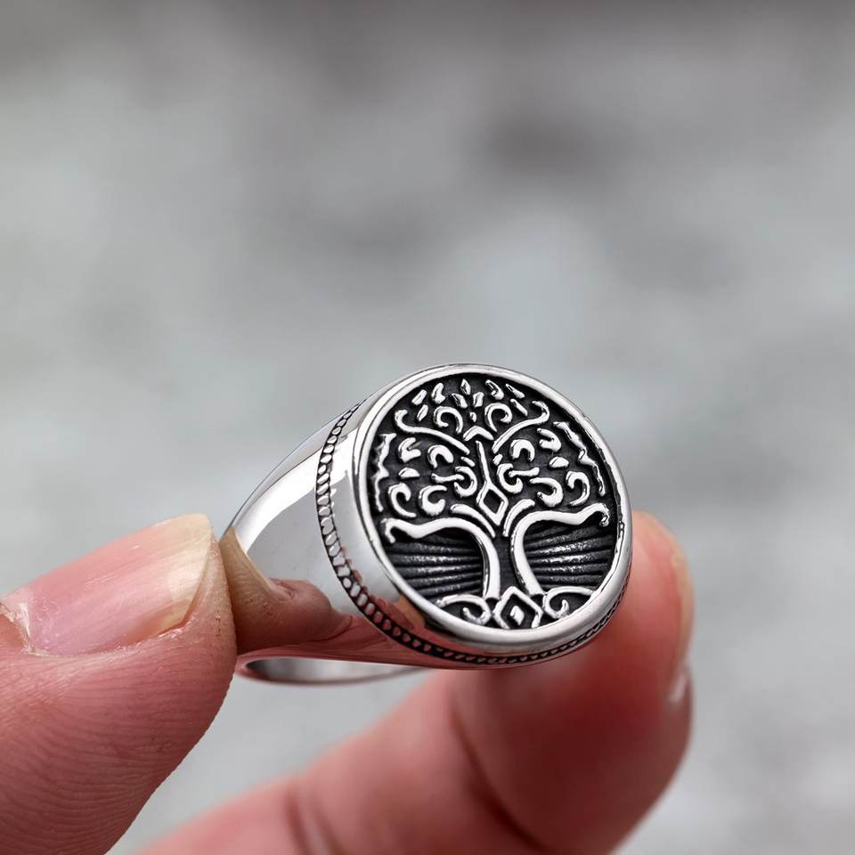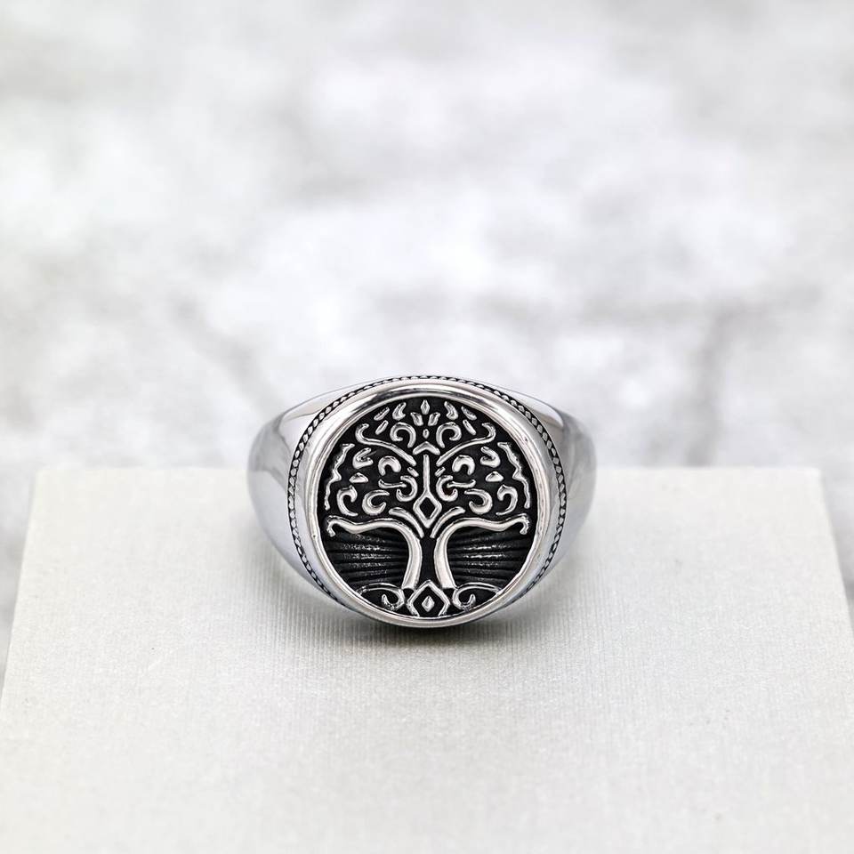 แหวนสแตนเลสวินเทจสำหรับทุกเพศ ดีไซน์ต้นไม้แห่งชีวิตทรงเรขาคณิต แบบเรียบ ฝังลายสไตล์ฮิปฮอป ของขวัญเครื่องประดับ