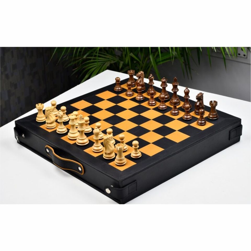 ชุดหมากรุกไม้ Staunton วินเทจ พร้อมกล่องเก็บหนังเทียม - กระดานหมากรุกสำหรับการแข่งขันระดับมืออาชีพ เกมกระดานระดับไฮเอนด์