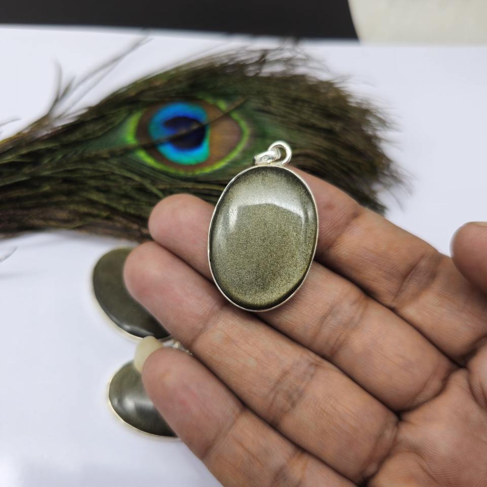 สร้อยคอจี้หินออบซิเดียนสีทองหินหลัก