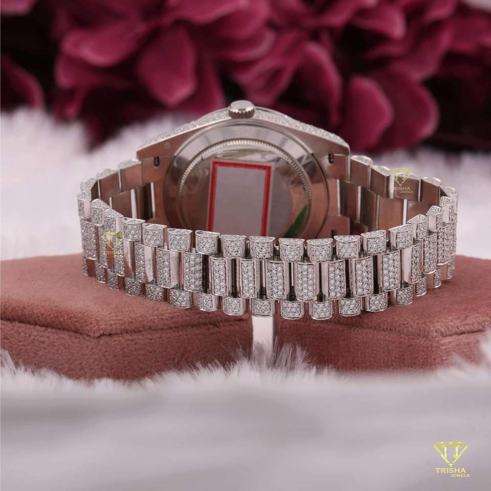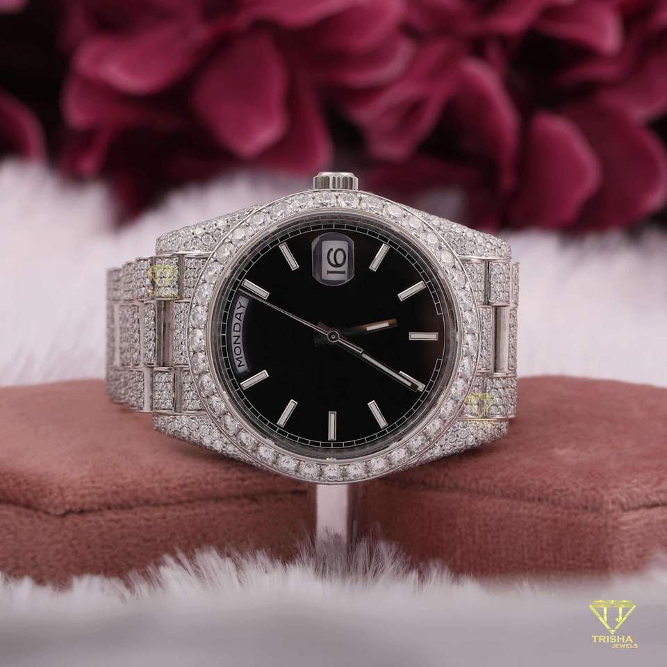 นาฬิกาสไตล์วินเทจแบบคลาสสิกสไตล์ฮิปฮอปกระจกอะนาล็อกที่ปลูกในห้องทดลองที่หรูหราทำจากสแตนเลสสีดำขนาด20มม.
