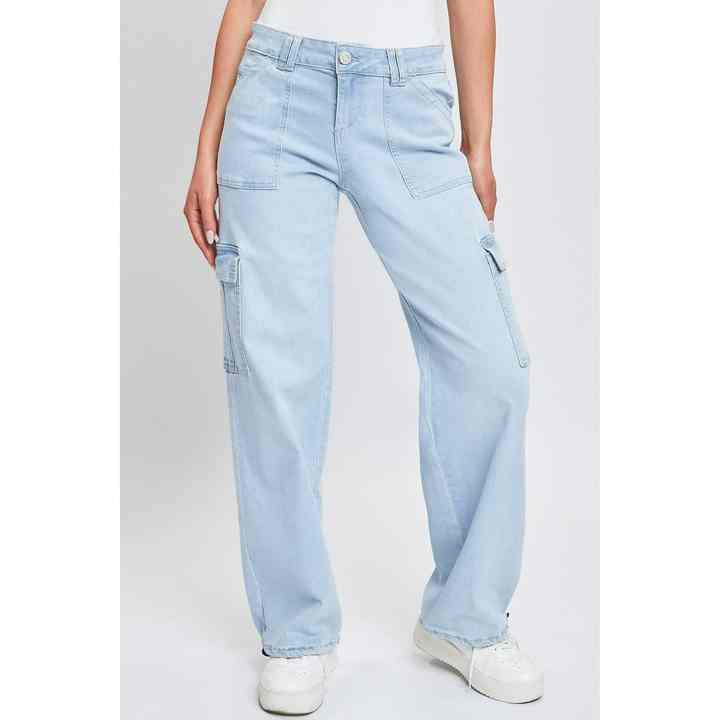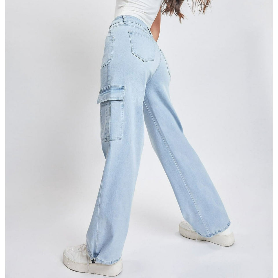 กางเกงสตรีทแวร์สไตล์วินเทจของผู้หญิงกางเกงยีนส์ขาตรงหลายกระเป๋าเอวสูงมีสไตล์สำหรับผู้หญิงกางเกงยีนส์ทรงคาร์โก้