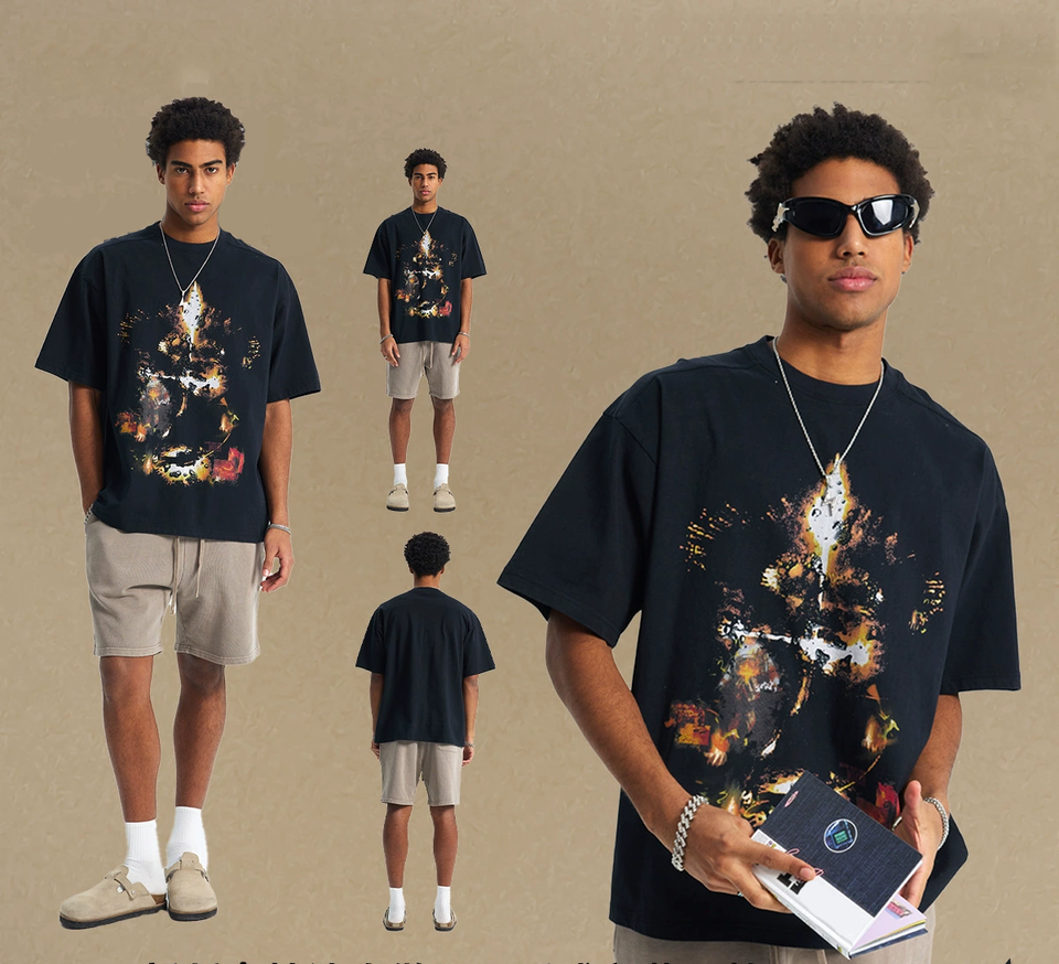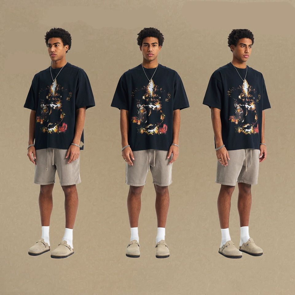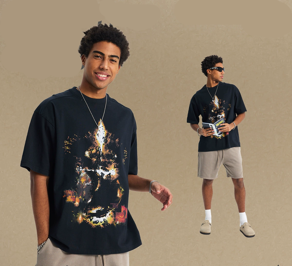 Vintage Style 100% Cotton Knitted Breathable Casual T-Shirts O-Neck Digital Print Loose Over-Sized 200 Gram Mens T-shirt