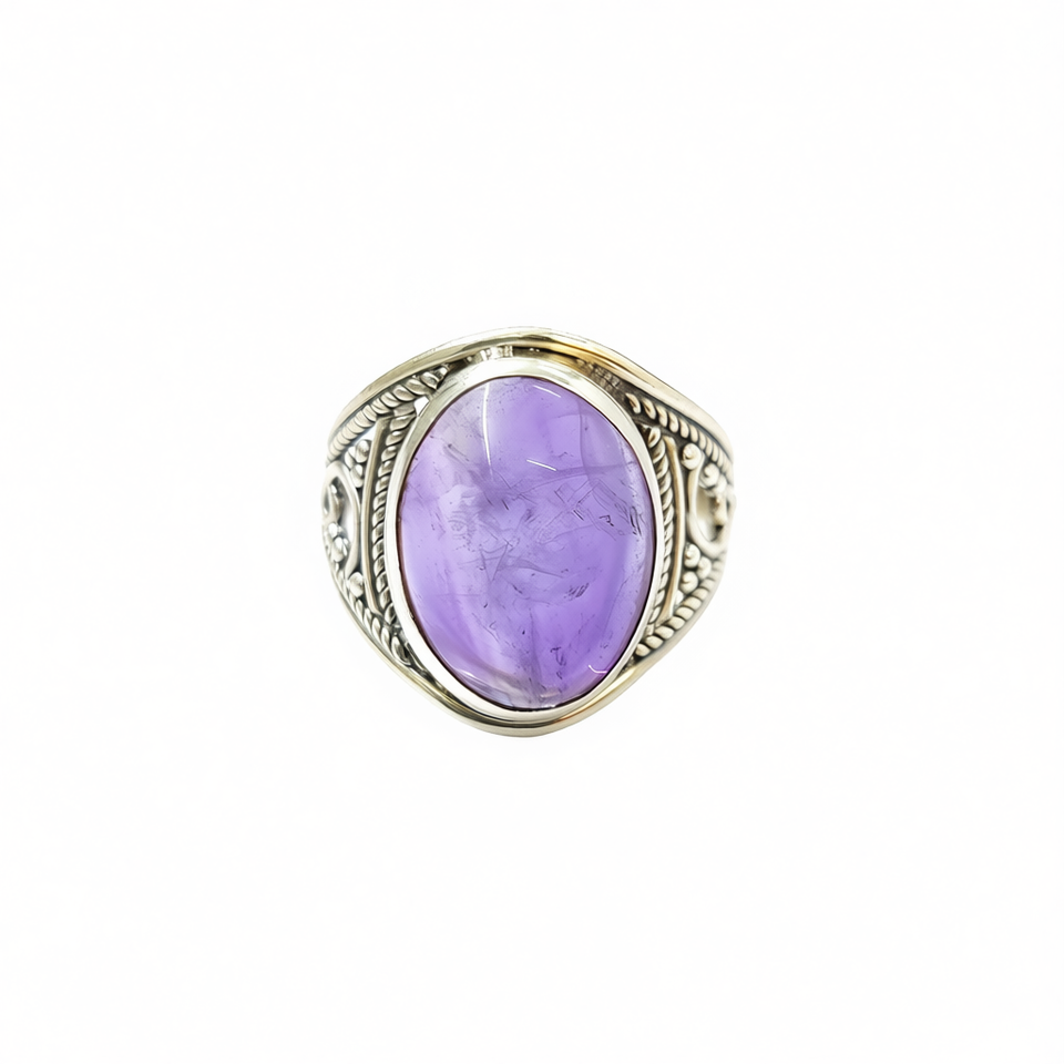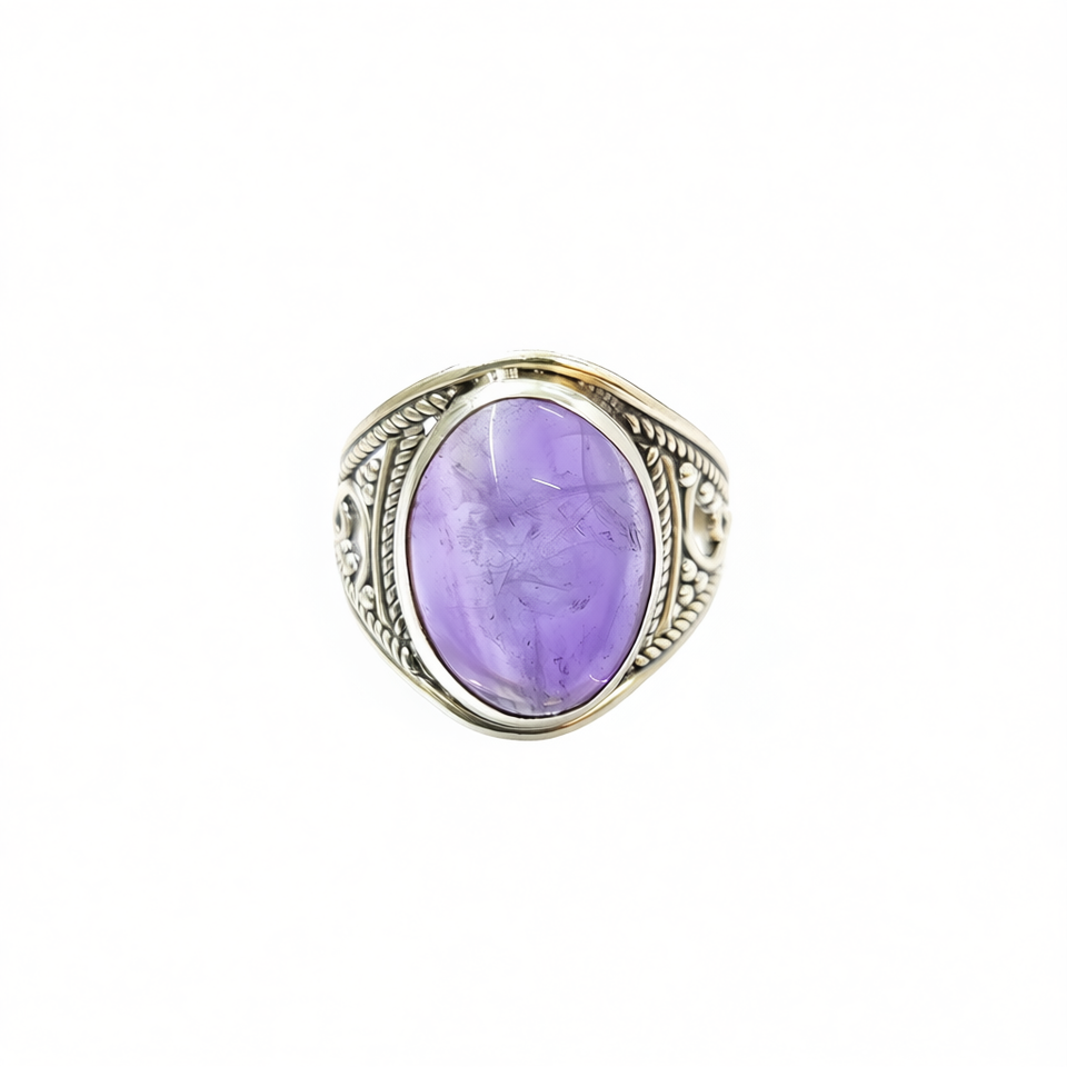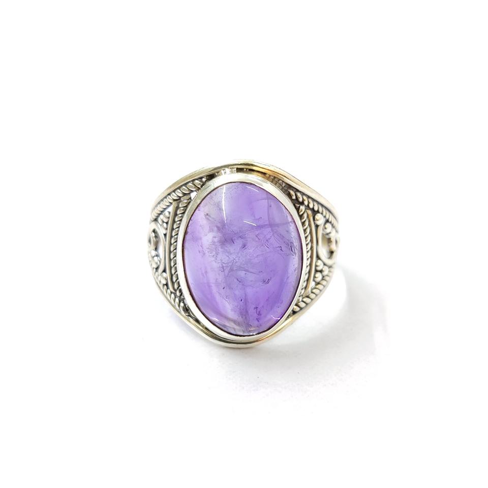 แหวนคริสตัลอเมทิสต์สไตล์วินเทจ น้ำหนัก 5.1 กรัม ประดับพลอยแบบฝังขอบ