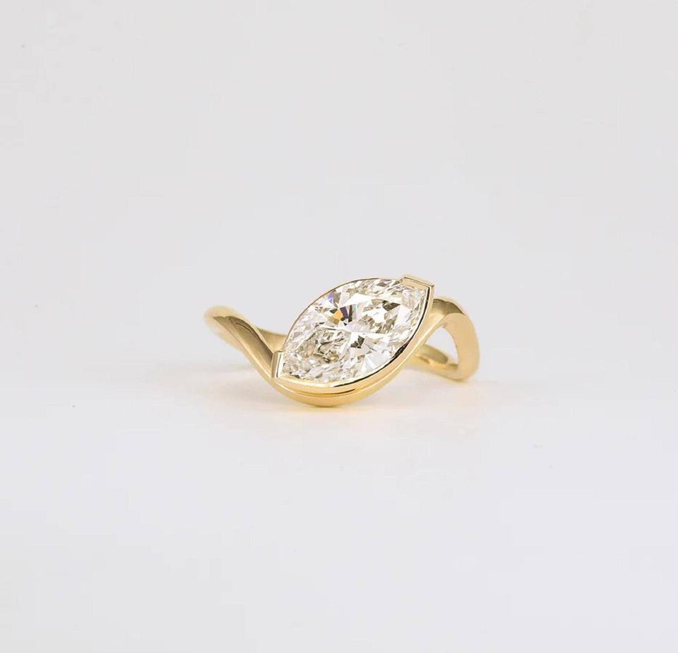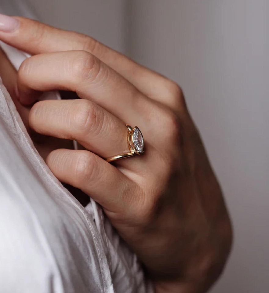แหวนหมั้นเพชรโมอิสขนาด6X12มม. สไตล์วินเทจพร้อมการตั้งค่าครึ่งกรอบและตะกร้าข้างแบบลอย