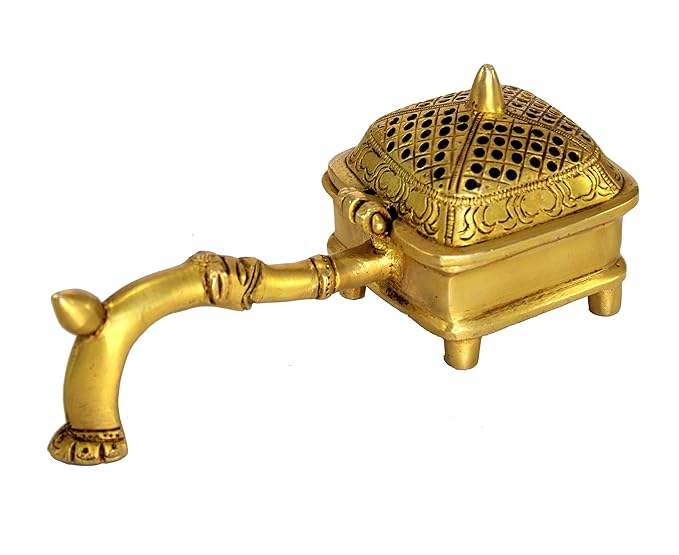 เครื่องหอมทองเหลืองสไตล์วินเทจพร้อมที่กำบังถ่านสำหรับเผากำยานและมดยอบได้อย่างปลอดภัย