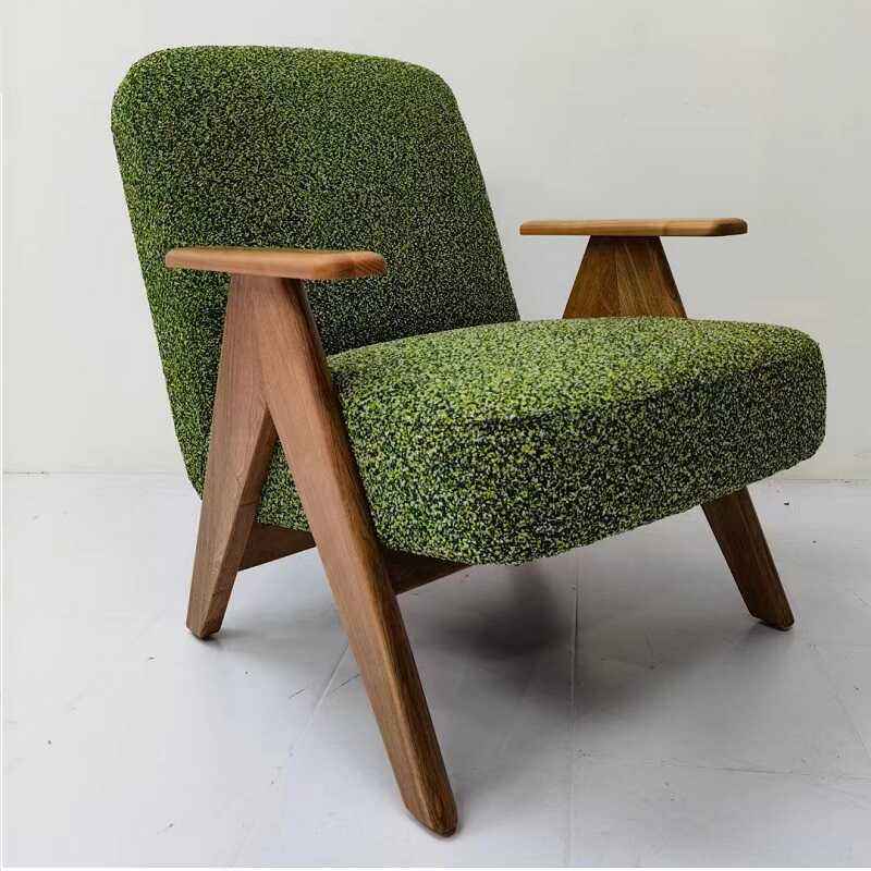 เก้าอี้โซฟาสไตล์วินเทจแบบสบายๆ เก้าอี้เดี่ยวไม้เนื้อแข็ง เก้าอี้นั่งเล่นตามหลักสรีรศาสตร์