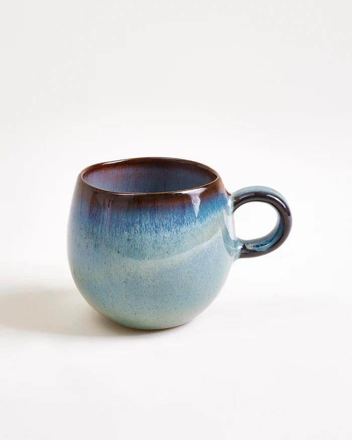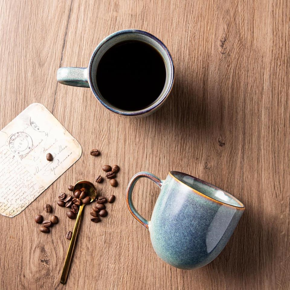 แก้วเซรามิกสไตล์วินเทจเคลือบสีอำพันเข้ม ทรงโค้งมน จับถนัดมือ เก็บความร้อนได้ดี เหมาะสำหรับชงกาแฟยามเช้าแสนสบาย