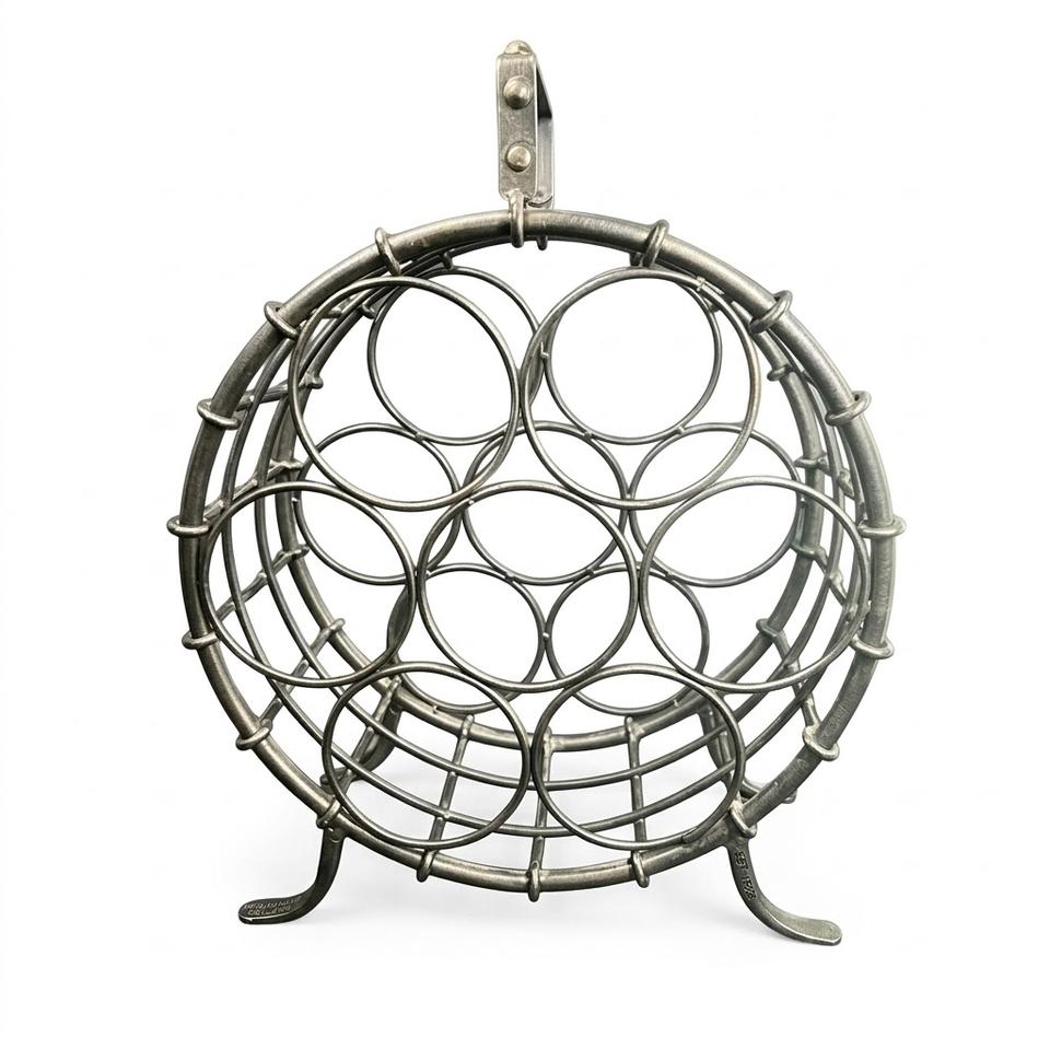 ชั้นวางไวน์เหล็กดัดทรงกลมสไตล์วินเทจแบบตั้งโต๊ะ ความจุ 6/7 ขวด ดีไซน์หรูหราเคลือบโครเมียม