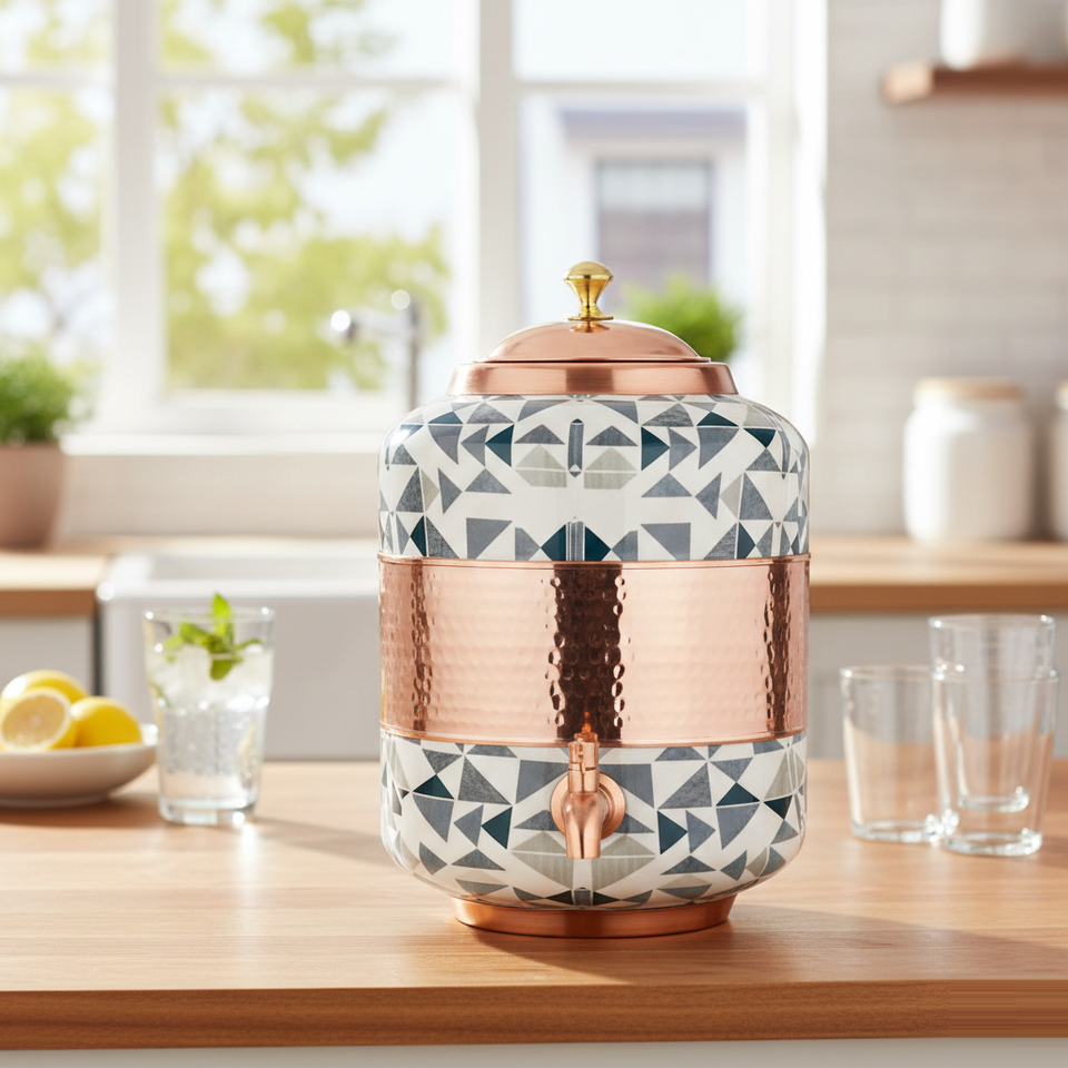 ตู้กดน้ำทองแดงสไตล์วินเทจพร้อมก๊อกและฝาปิด สำหรับใช้ในบ้าน ครัว โรงแรม ร้านอาหาร ภาชนะเสิร์ฟเครื่องดื่ม