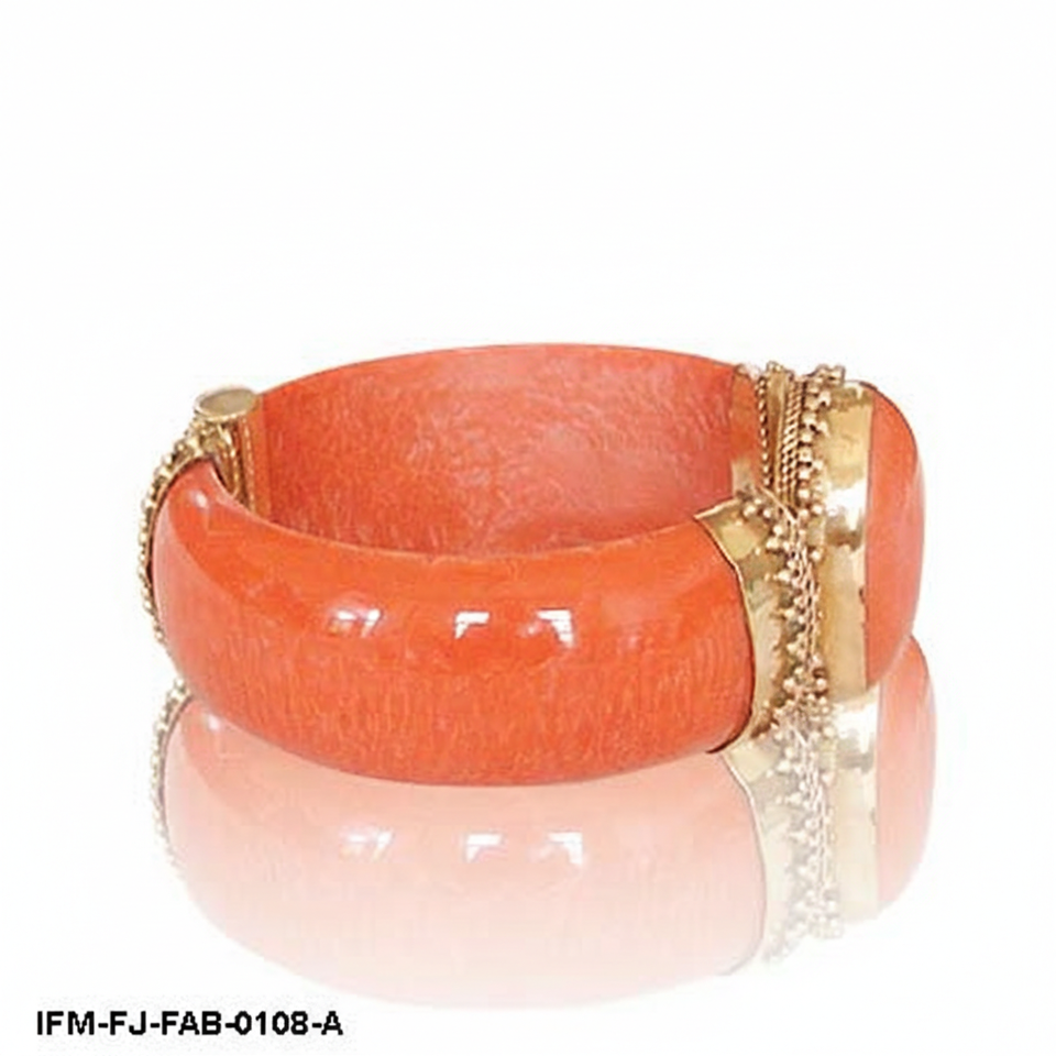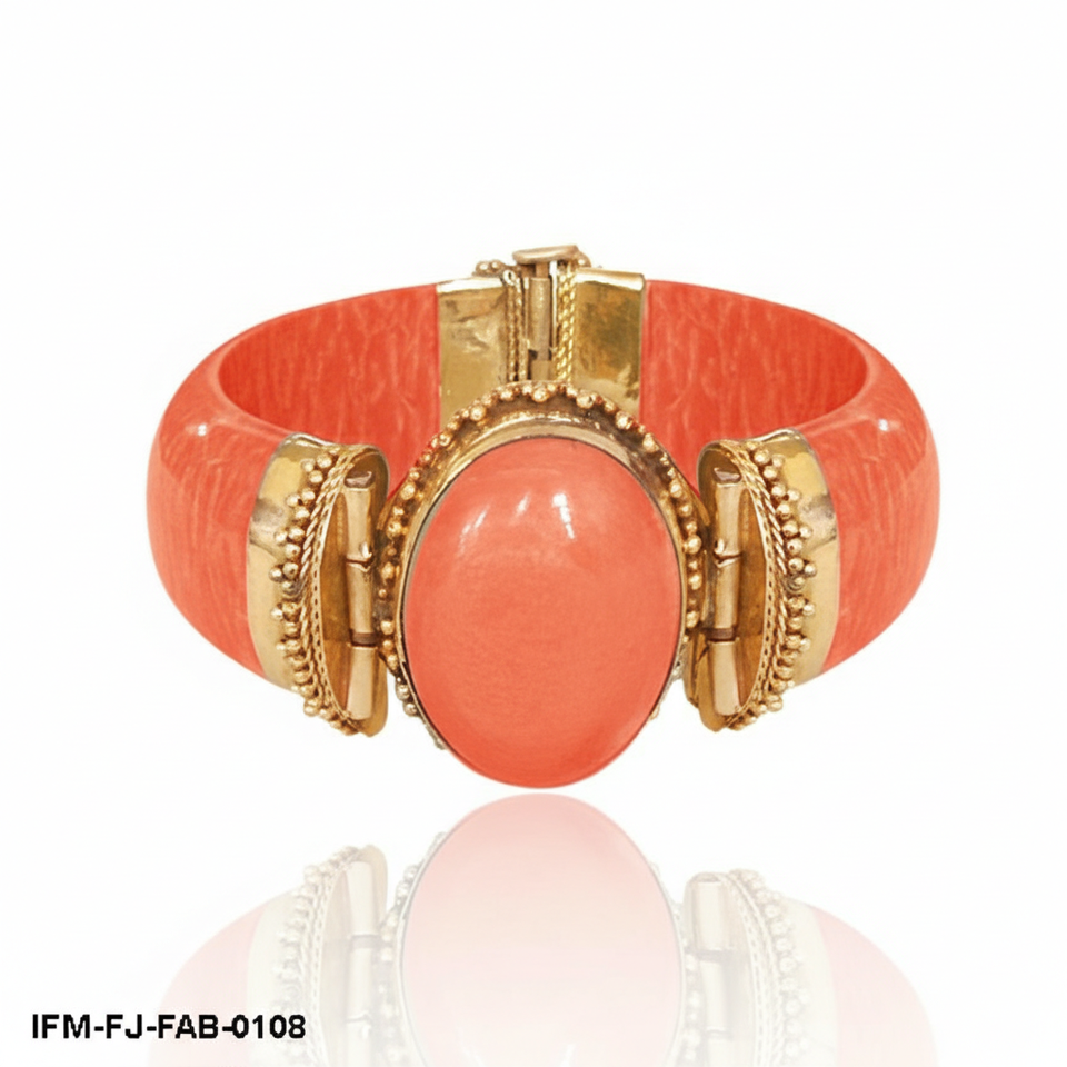กำไลข้อมือเรซินสีส้มสไตล์วินเทจ – กำไลข้อมือลายฉลุสีทองสำหรับผู้หญิง