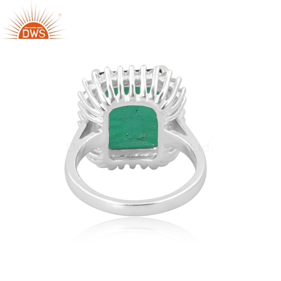 แหวนเงินแท้สไตล์วินเทจประดับพลอย CZ และควอตซ์มรกตแบบดับเบิ้ลเล็ต สำหรับผู้หญิง ของขวัญสำหรับเธอ สามารถสวมซ้อนกันได้