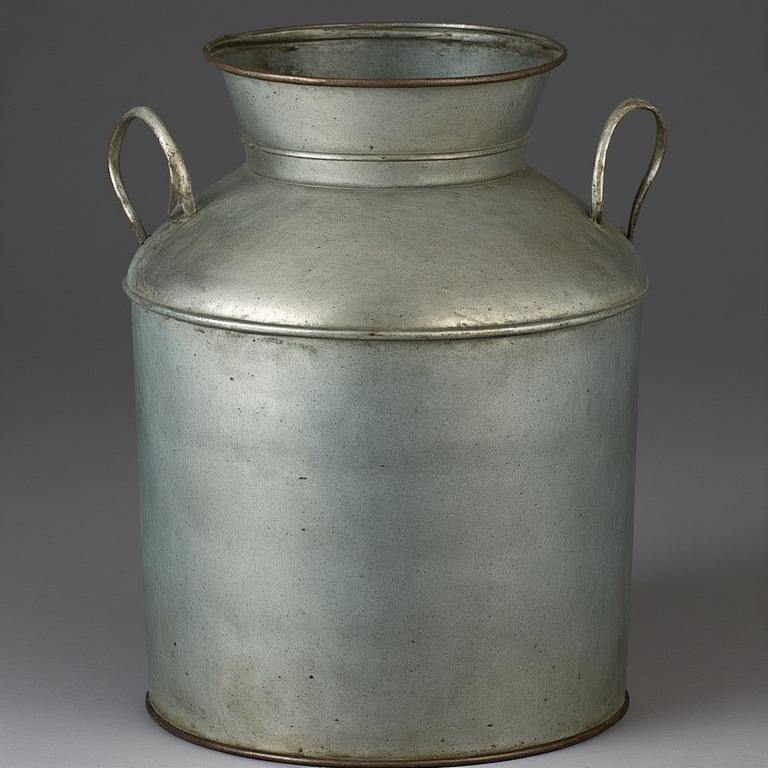 กระป๋องนมชุบสังกะสีตกแต่งสไตล์วินเทจพร้อมพื้นผิวแบบชนบทเหมาะสำหรับห้องครัวสวนกลางแจ้งคาเฟ่บ้านไร่ที่ได้แรงบันดาลใจ
