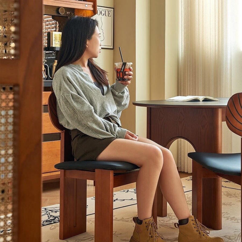 เก้าอี้รับประทานอาหารสไตล์วินเทจ พนักพิงไม้เนื้อแข็ง ดีไซน์สแกนดิเนเวียน ห้องนั่งเล่น ใช้ในบ้าน เฟอร์นิเจอร์สำหรับผู้ใหญ่