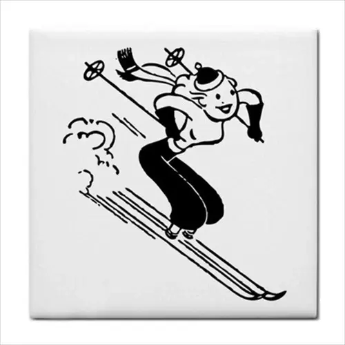 Vintage Style Downhill Skiing Woman Border Craft Ceramic Tile Wall Art for Kitchen Backsplash