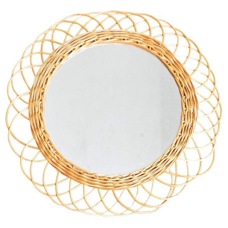 กระจกแขวนผนังหวายเป็นมิตรต่อสิ่งแวดล้อมสไตล์วินเทจประดับทรงกลม