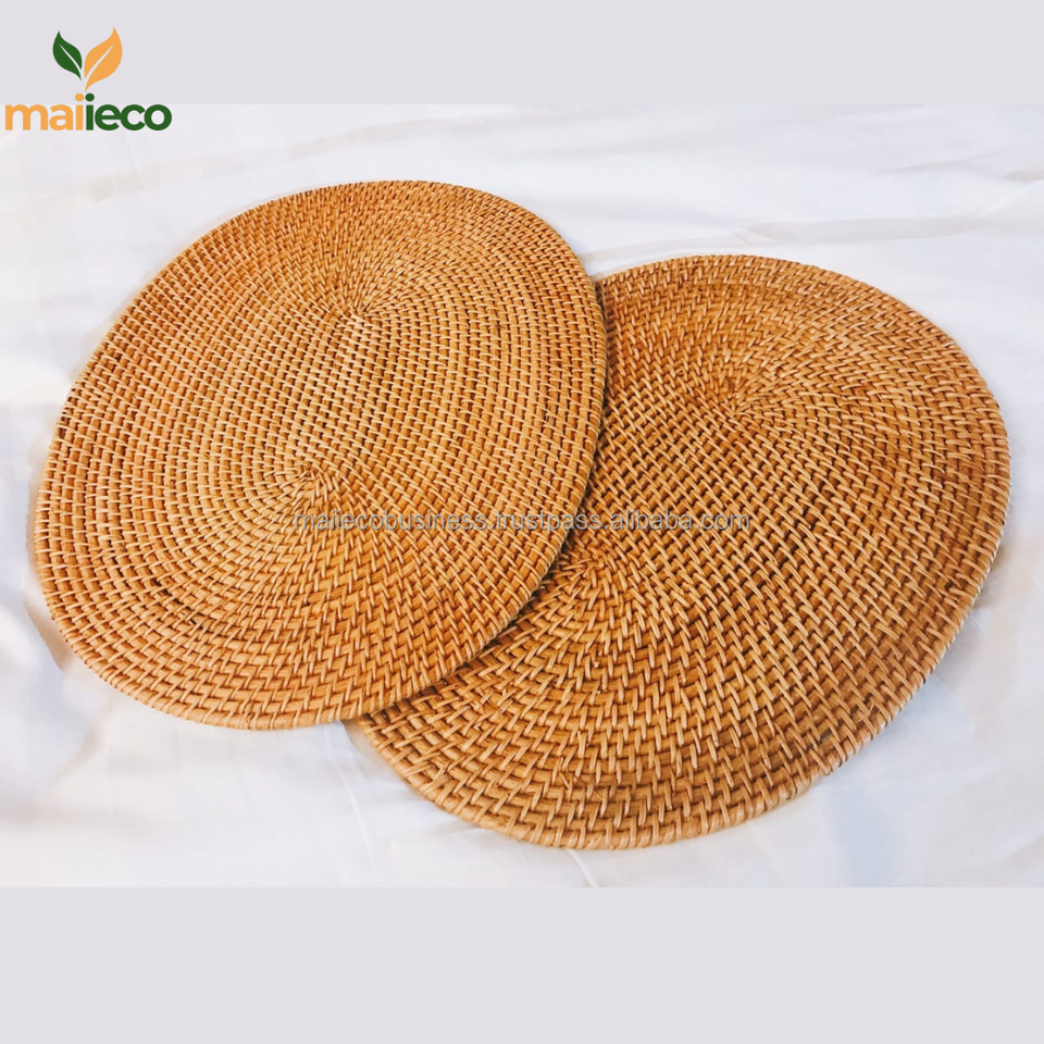 คำอธิบาย:แผ่นรองจานบนโต๊ะหวายสำหรับรับประทานอาหารงานแต่งงานที่บ้าน