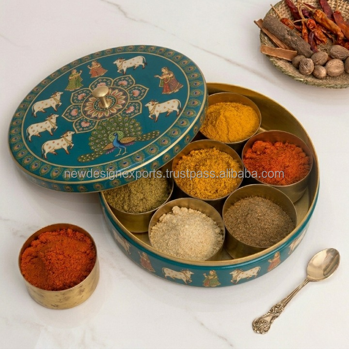 กล่องใส่เครื่องเทศทองเหลืองลายช้างสไตล์วินเทจ – กล่องเก็บของในครัวโลหะตกแต่งแบบหล่อขึ้นรูปด้วยมือพร้อมฝาปิด