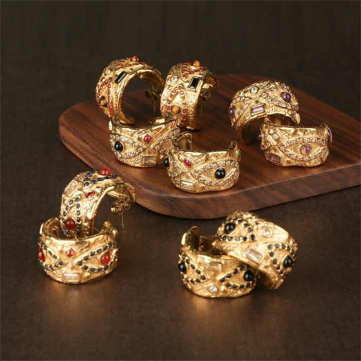 ต่างหูสตั๊ดสแตนเลสสตีลดีไซน์รูปตาปีศาจสไตล์วินเทจพร้อมเพทายทอง18K ของขวัญหินแท้สำหรับผู้หญิง