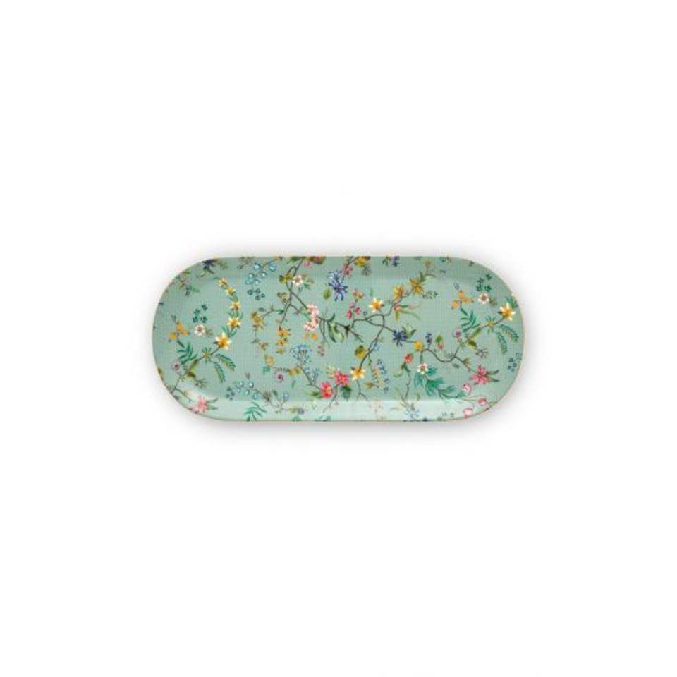 ถาดเคลือบลายดอกไม้สไตล์วินเทจ - ถาดจัดระเบียบทรงวงรีขนาดใหญ่สำหรับวางบนเคาน์เตอร์ ถาดเสิร์ฟชาและเครื่องดื่มโลหะคุณภาพพรีเมียมสำหรับเป็นของขวัญสุดหรู