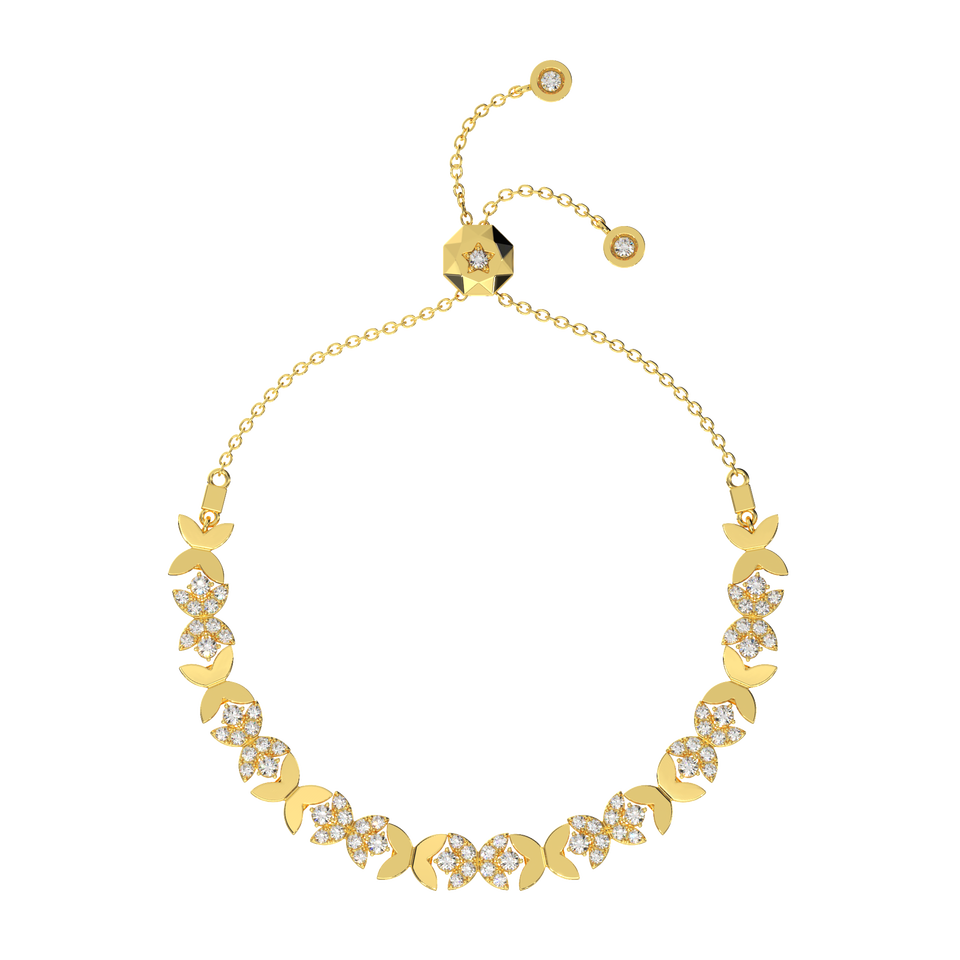 สร้อยข้อมือโซ่ดอกไม้สไตล์วินเทจสำหรับผู้หญิงหรูหราทองแท้10K พร้อมหินเพชร CZ ผลิตในเวียดนาม