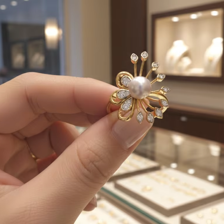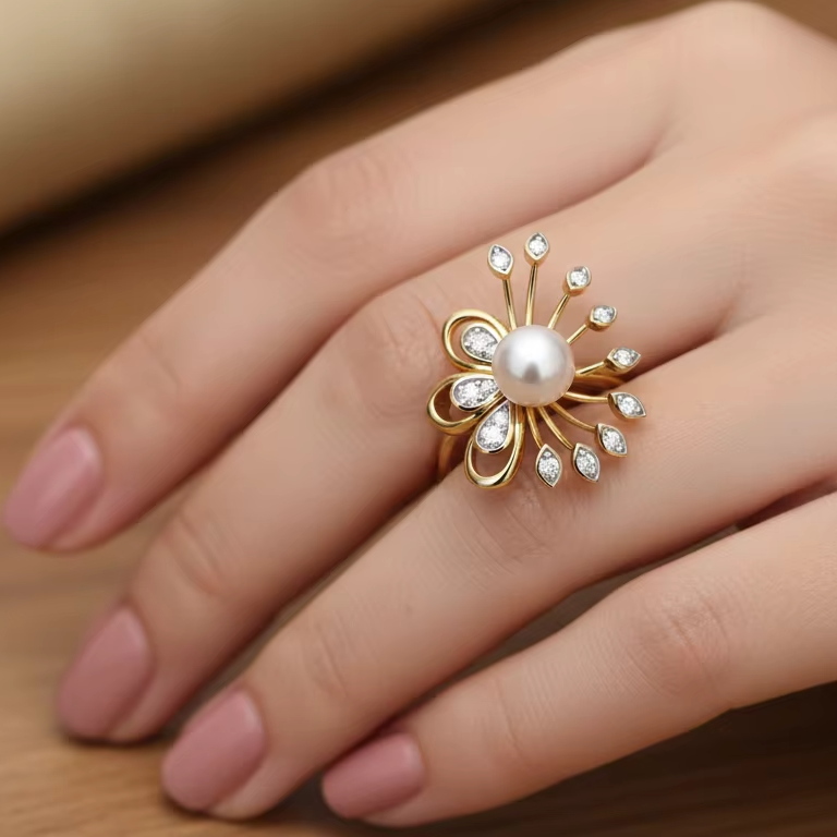 แหวนทองประดับมุกสไตล์วินเทจ ดีไซน์เก๋ เหมาะสำหรับงานปาร์ตี้ ของขวัญสำหรับผู้หญิง