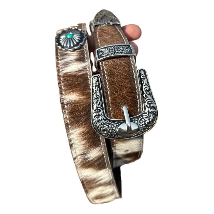 เข็มขัดหนังแท้สไตล์วินเทจ หัวเข็มขัดโลหะแบบตะวันตก แข็งแรง ทนทาน ปรับได้ ความกว้าง 1-1.5 นิ้ว มีทุกขนาดความยาว