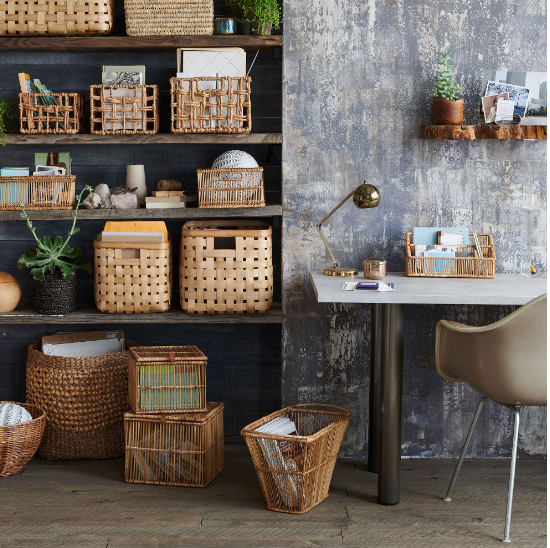 ตะกร้าหวายสานด้วยมือสไตล์วินเทจพร้อมฝาปิดตะกร้าหวายสไตล์โบฮีเมียนสำหรับจัดระเบียบในบ้าน