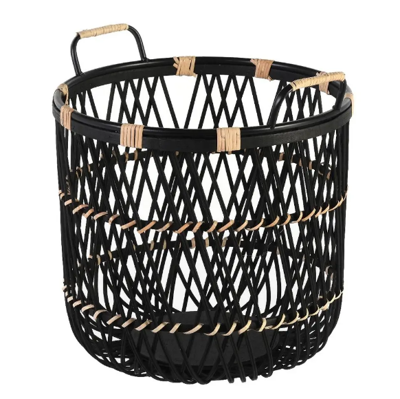 ตะกร้าหวายสานด้วยมือสไตล์วินเทจพร้อมฝาปิดตะกร้าหวายสไตล์โบฮีเมียนสำหรับบ้าน