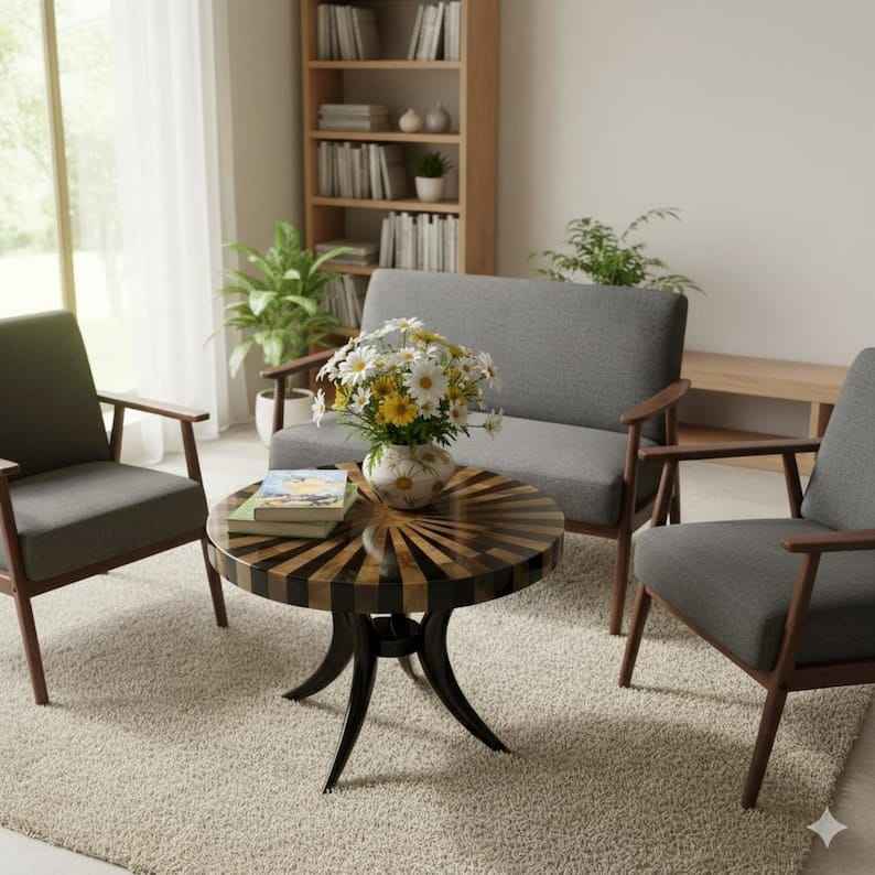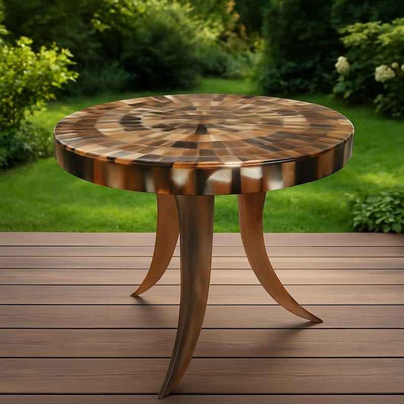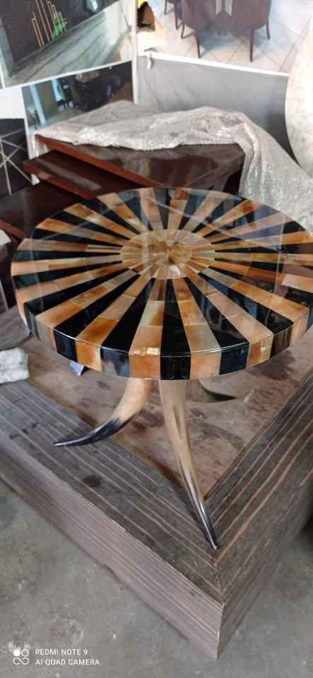 โต๊ะกาแฟสไตล์วินเทจประดับเขาสัตว์ งานฝีมือประณีตสำหรับการตกแต่งหรูหรา โต๊ะกาแฟท็อปเขาสัตว์ทันสมัย