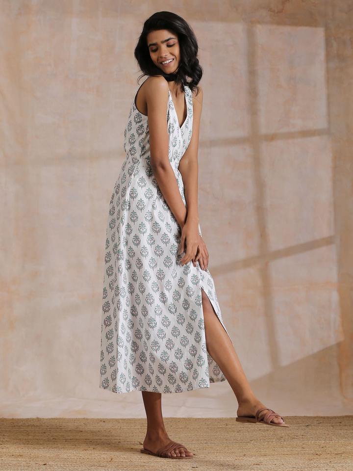 ชุดเดรสยาวผ้าฝ้ายอินเดียสไตล์วินเทจชุดเดรสลำลองป้องกันไฟฟ้าสถิตย์พร้อมสายรัดปรับได้สำหรับฤดูร้อน